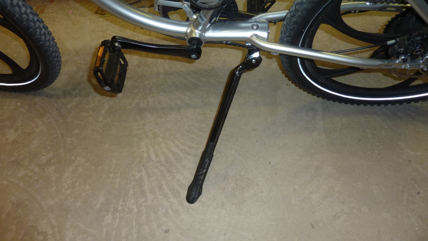 B. We also purchased these straps from Amazon which attach to frame and front wheel to keep front wheel from moving around due to wind and rough roads.