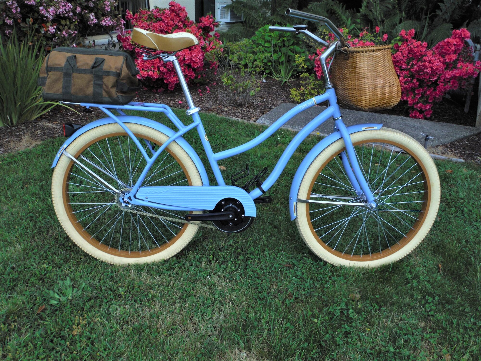 Thanks. I have been holding back. Someone accused me once of Spamming photos. This one will be a single speed classic beach cruiser, low step, in powder blue with brown touch points and accents and cream wide grippy tires. All touch points will be top shelf. It will have a special coaster brake torque sensing mid-motor at 85Nm. The gearing will be medium low for tourists hopping between my town's 12 beer gardens and visiting restaurants around the turning basin or seeing the bird sanctuaries on the flats. A casual town rider that can take gravel. It will have a brown tool bag on the rack. So far, all I have done is clean it and removed the grips and totally dumb vinyl big gulp cup holder. I will drill for all thru-frame wiring. A taller seat post is on the way. The front basket will go. The rear brown bag is so much better. And in honor of Mr. T. it is getting a gold chain with nano wax dry lube. The chainguard will stay. It will have one visible wire in dove gray by the headtube to the thumb sized display.