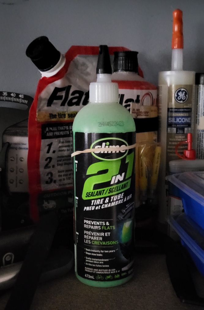 My favorite is Muck-Off innertube sealant. It forms polymer strings that then harden in a puncture.I bought some Slime I was going to use. So the consensus Flat Out is better? If so I can take the Slime back and get Flat Out.