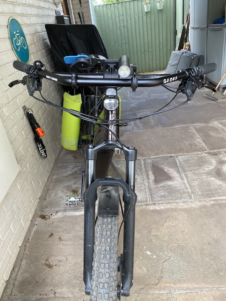 Those On One bars look great on your bike and I like the 45° sweep but the rise is much less than the original bars, which my (non)LBS told me is 50mm on the Vado. I would have to then add a riser stem, so maybe it's not worth going cheaper on the bars.