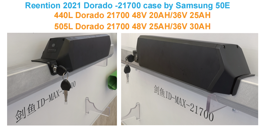 It is known that Reention Dorado series battery is a popular type used on most electric bikes. There are Dorado Mini, Pro,Plus,Max case for 18650 cells pack, and they are interchangeable as long as the down tube is same long, 505L or 440L. (The battery length correspond as about 18inch or15.5inch.)