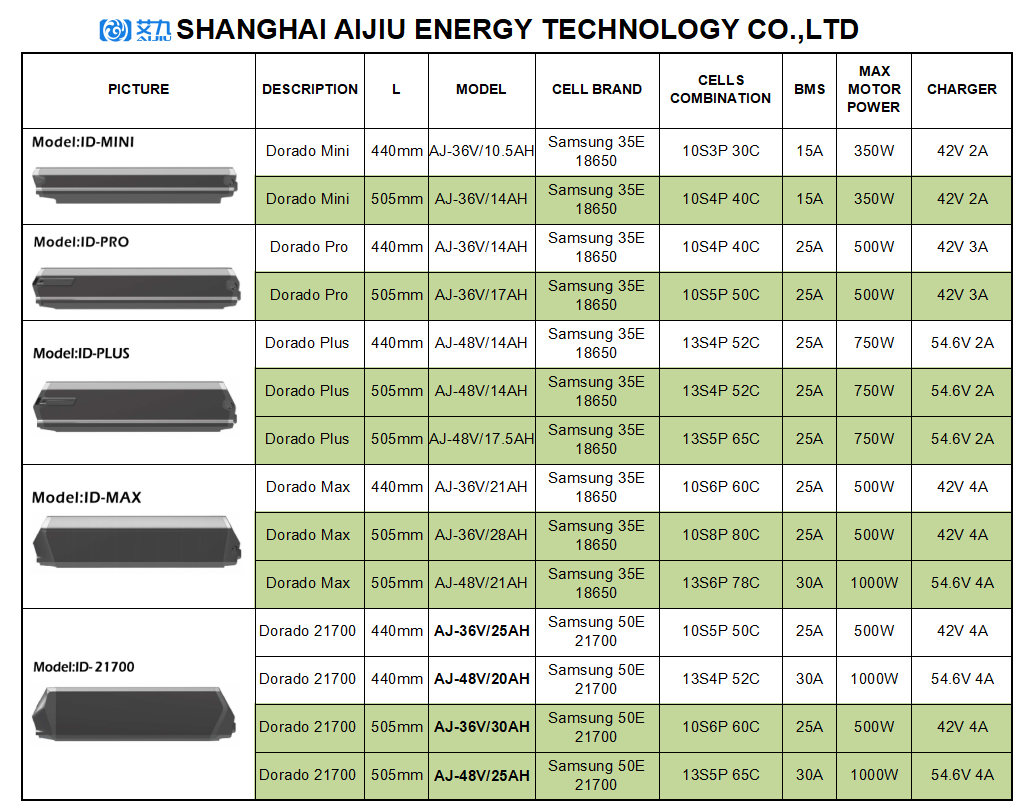 For 440L, Dorado Plus can do 48V 14Ah while Dorado Max do 36V 21Ah while by Samsung 35E 18650 as maximum option