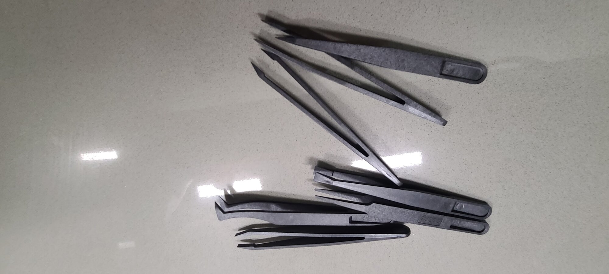 2. Grabbed a pi\air of my wife's make=up tweezers (I think they are eyebrow tweezers. Very Sharp and angled at the end.