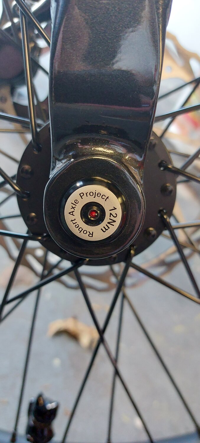 Front wheel security courtesy of HexLox. This size fits/replaces the original quick release front thru axel.