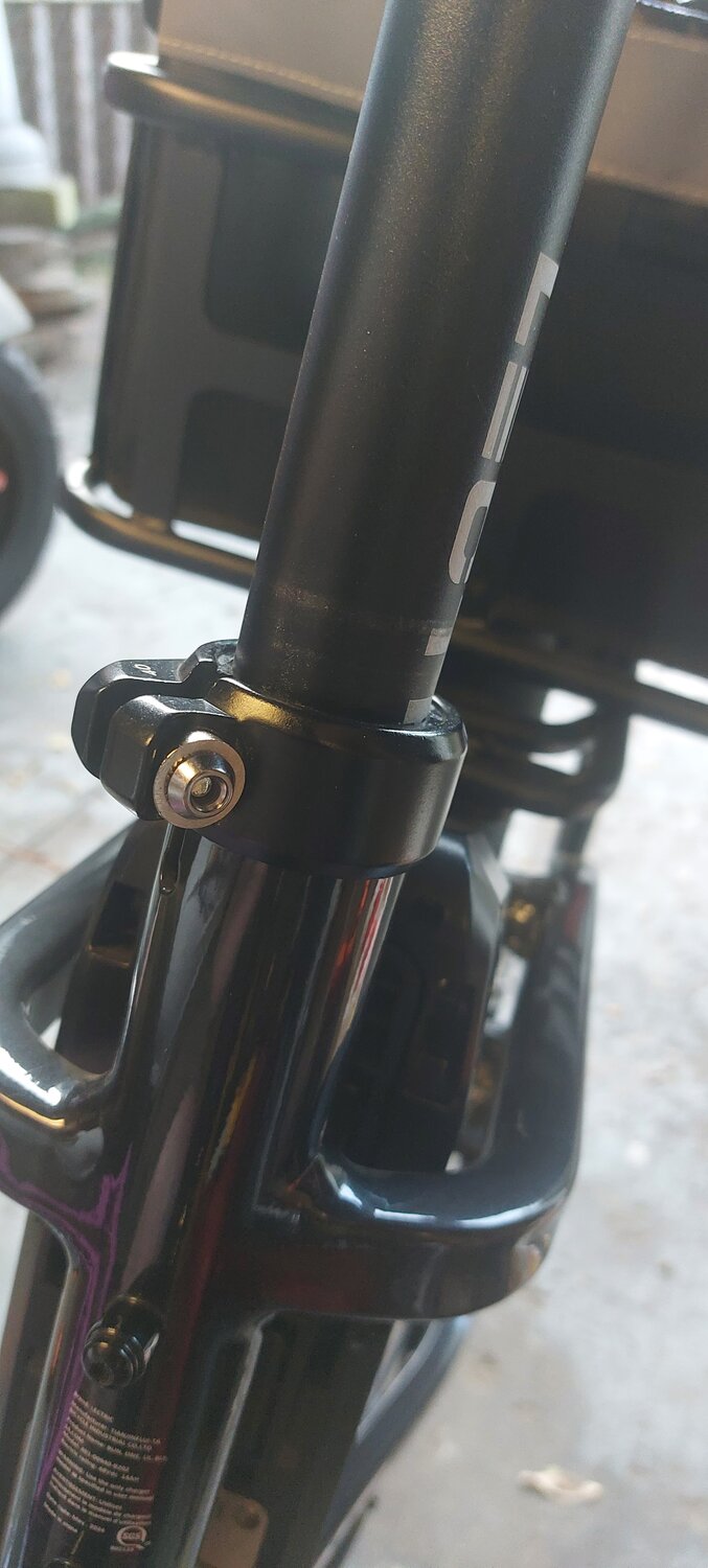 I ordered 2 quick release anti-theft seat clamp conversions (one for the ONE and the other for the Xpedition) from HexLox. I also ordered a HexLox thru-axle for the front wheel of the ONE. I'm pretty sure I got the measurements correct on the thru-axle. Will post pictures and the axle size once I confirm everything fits/works. I don't want no bum types nabbing my seats!