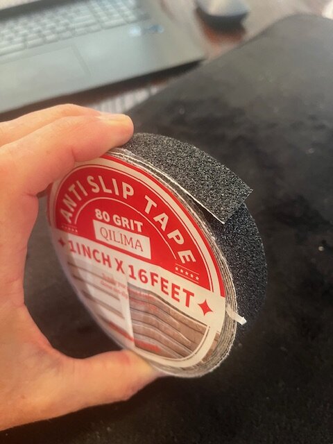 I had the same poor experience with the stock friction tape and a few brands of grip tape (including 3M safety walk and Gorilla). Sanding belt has worked well with no noticeable evidence of wear or slippage on reasonably appropriate tires for the Qiroll, YMMV.
