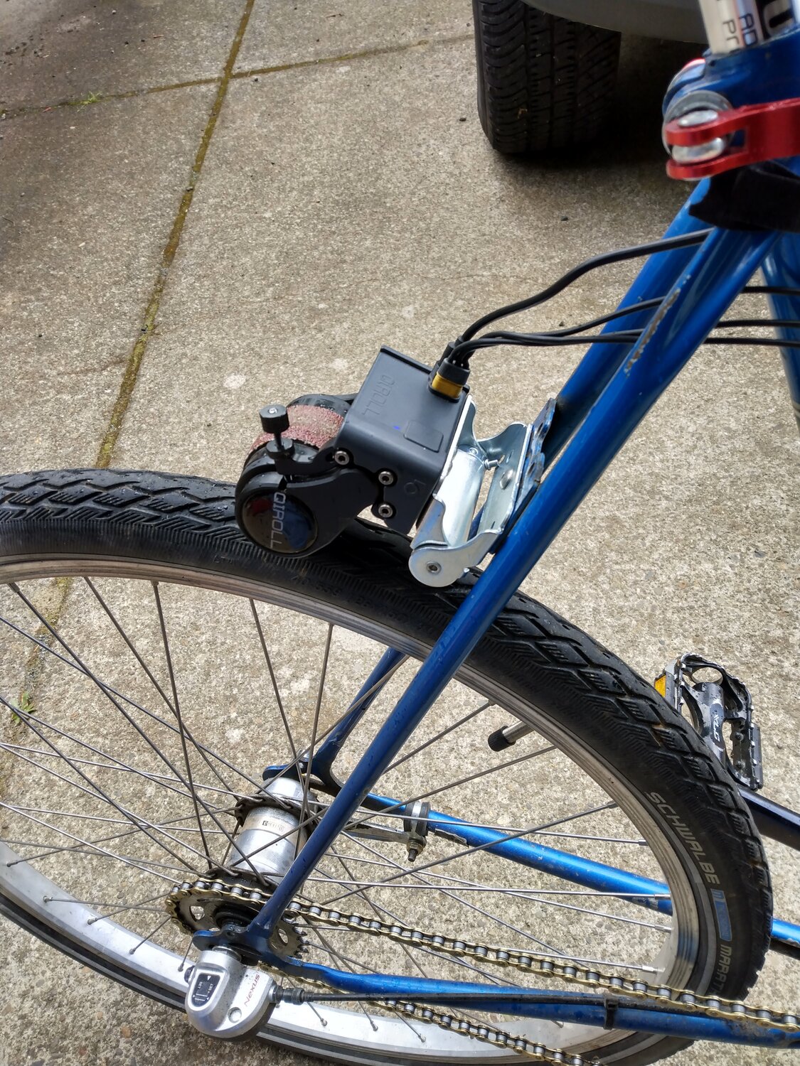 I couldn't quite figure out what kinhsang fabricated up but I like the idea of spring loading the Qiroll instead of fixed tension as stock. Gboost makes a friction drive with spring tension which you can see on their website. From what I can see on the product image the tension spring doesn't look very robust but apparently still gets the job done. Here's what I tried today on my Qiroll test bike which has a lot of room on the stays for installation.