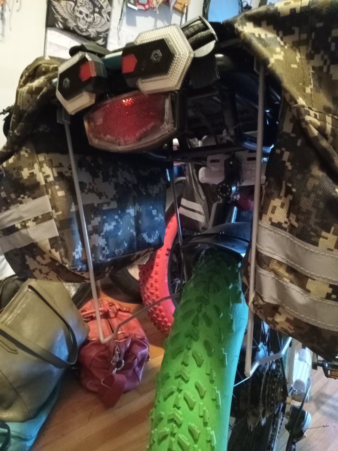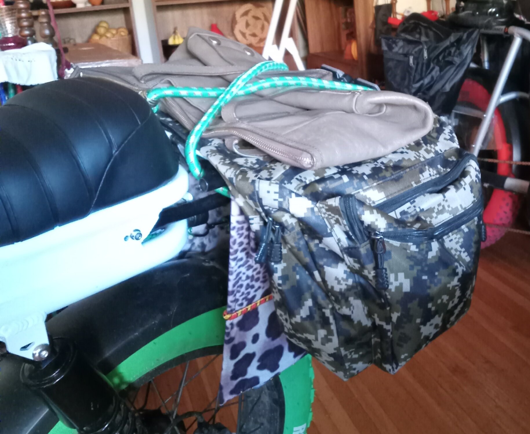 💠 three panniers (green, black and green camo)