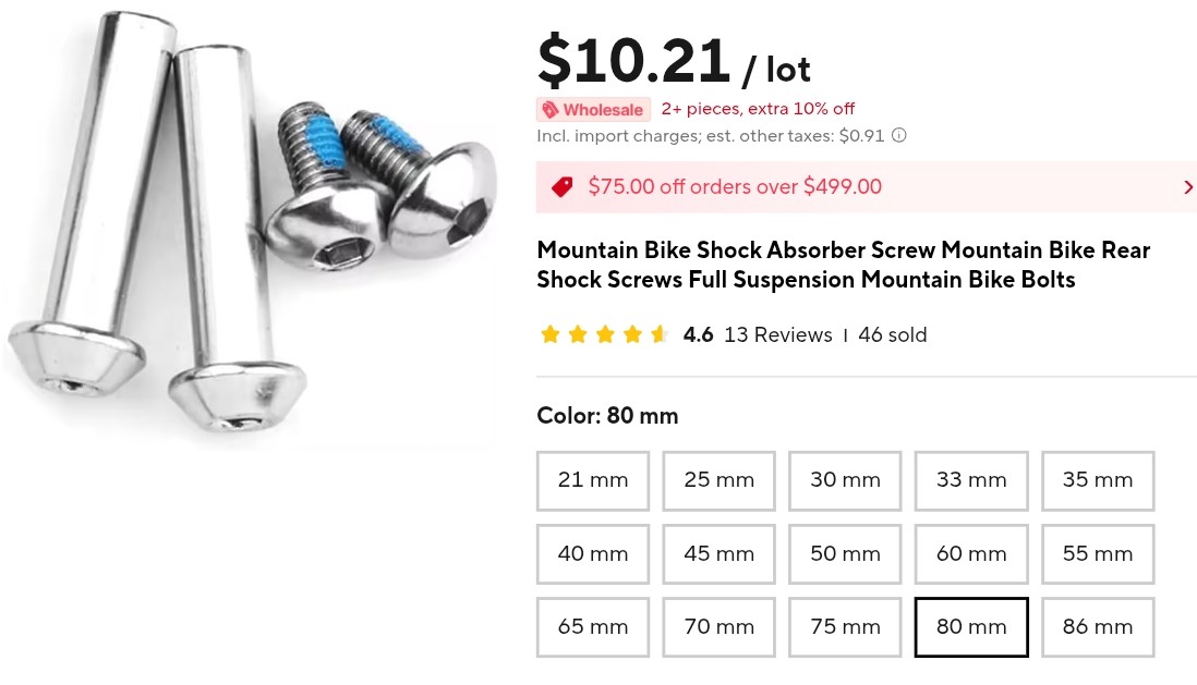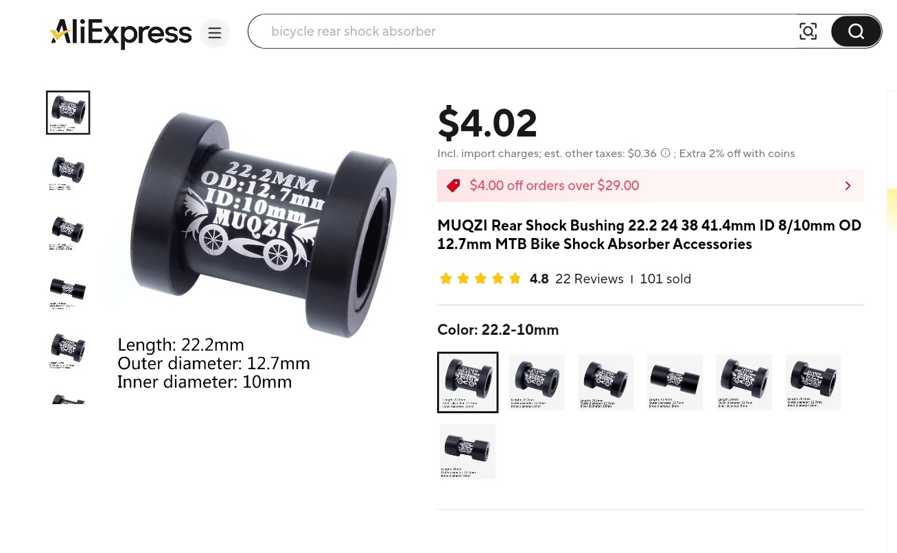 The shock has already shipped, and the seller didn't list any bushings, so I need to make a separate purchase anyway.