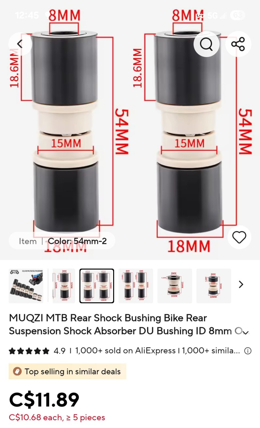 I've got a 10 X 54 mm bushing on the top, but I can't find a 54 mm long bushing with a 10 mm inner diameter ??
