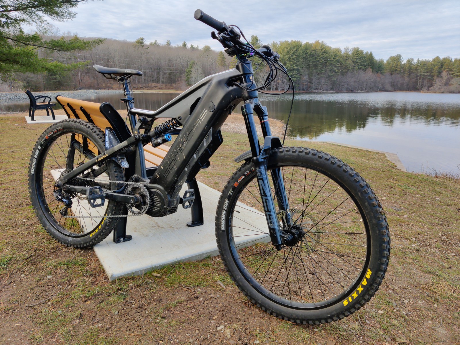 RoskShox ZEB 29" 170mm forks w/fender, Fox DHX RC4 coil shock 400lb coil, Christini chain ring adapter with 36T chain ring, KMC e11 chain, Sram gx 11 speed derailleur, Miranda 155mm crank arms, Ergon seat, crank brothers stamp1 pedals, 203mm front rotor, 35mm oil slick stem, Maxxis Minnion DHF and DHR 27.5x2.8, motor has been serviced and all suspension bearing have been replaced.View attachment 144265View attachment 144266View attachment 144267