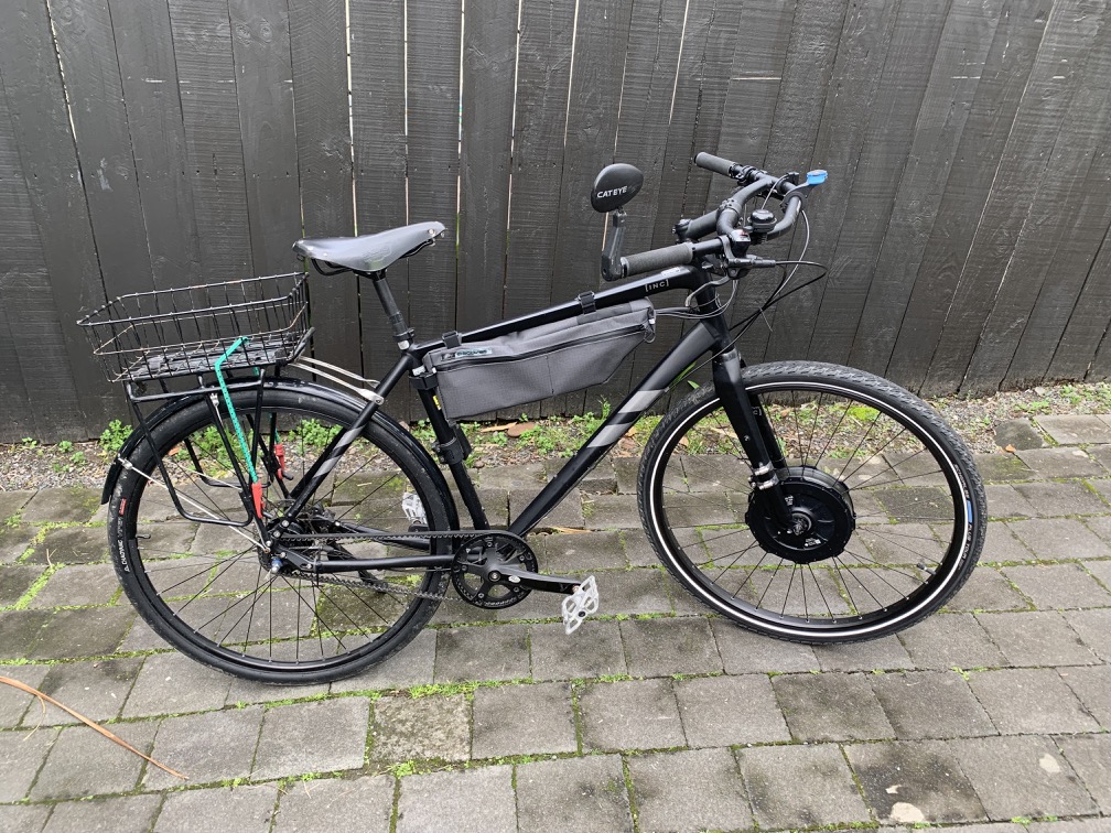 I'm so sorry I'm late to this party. But, OMG. I am thinking along very similar lines and love those Priority bikes - Do you guys know Shifter channel on YouTube? I recently converted an Avanti Inc 8 speed Alfine, Gate belt drive using front All Axle from Grin. Along with baserunner and CA. And all those wires drove me crazy too. I didn't even want to large battery fixed to my downtube, so opted for local battery x2 to fit in topeak bag under my seat. I love the idea of the LiGo batteries from Grin but didn't like the totally sealed aspect - I want to be able to replace dud cells if I need to. I initially had the baserunner fixed to Jones handle bars and CA on top with wires pushed into small bag in the Jones gap. After noticing the baserunner did not get hot from my use, even without heatsink that I forgot to order ( and Grin failed to mention), I moves the CA and baserunner into a toptube bag along with all the wires AND the battery. The batteries are 10s2p and small. If I plan a big trip, I'll put the second battery in the seat bag and simply change them over if the first goes flat. Here are the 2 setups. I'm now planning to go back to battery in seat bag and CA + Baserunner up front using a handle bar bag for the wires. I have the BB torque sensor to fit and wire in and I'm keen to set up regen braking with a brake cutoff switch to change throttle into progressive braking. The CA is necessary for all this and has been easy to access and programme via serial cable. Those are bags of coffee beans in the carrier - one of my favourite reasons to go for a ride - freshly roasted beans.