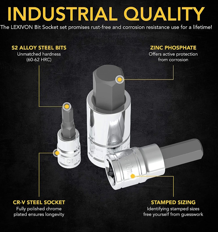 I have the Lexivon bit set and love the quality. I learned the hard way though, that you need to use a torque wrench. It's too easy to overtighten socket head screws when using them with a regular ratchet wrench.