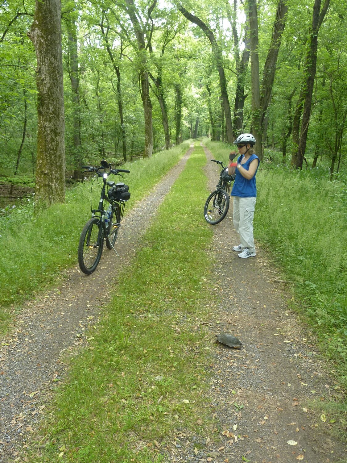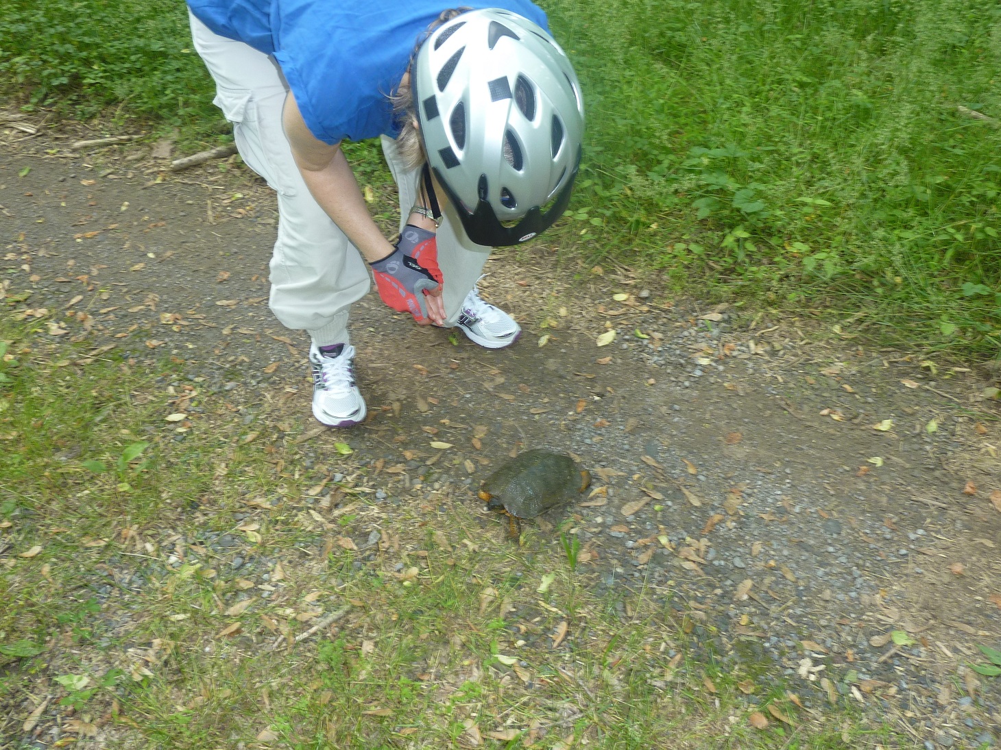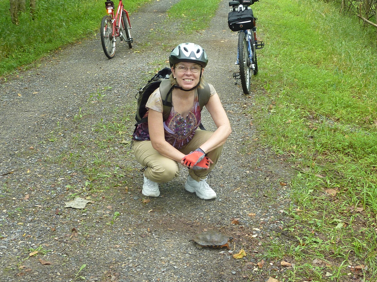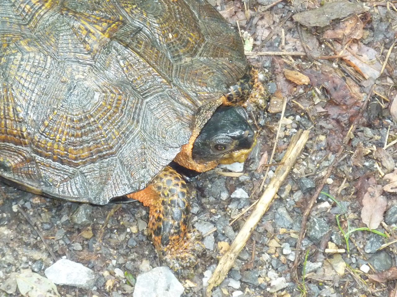 Hitting one of these guys at speed could cause a spill. I usually move them off the trail whenever possible. One exception was the 18" snapper I encountered last season. He could have easily taken out a few spokes as well as a finger or two. Unfortunately, I didn't have the camera that day.