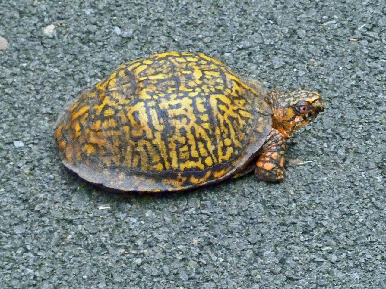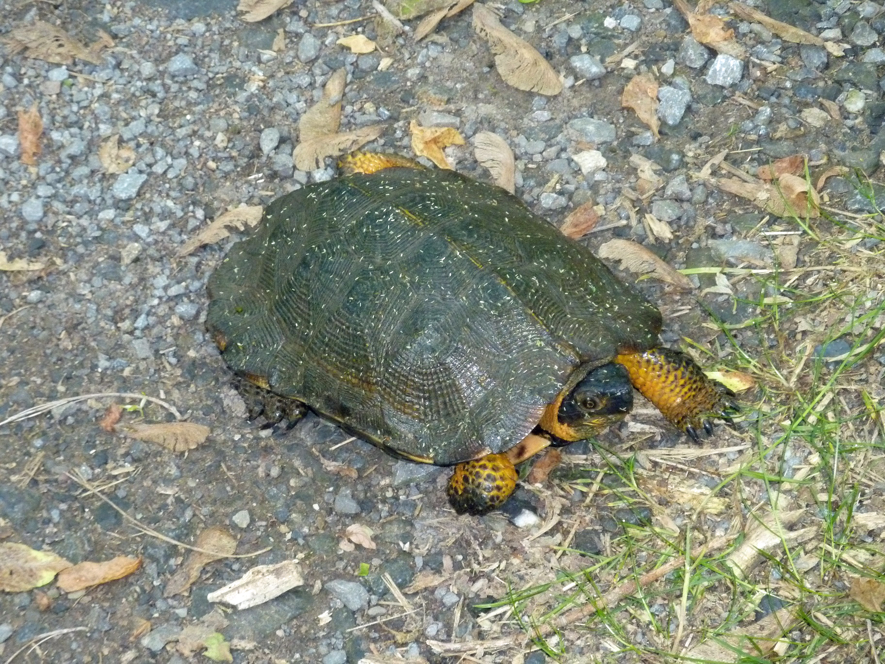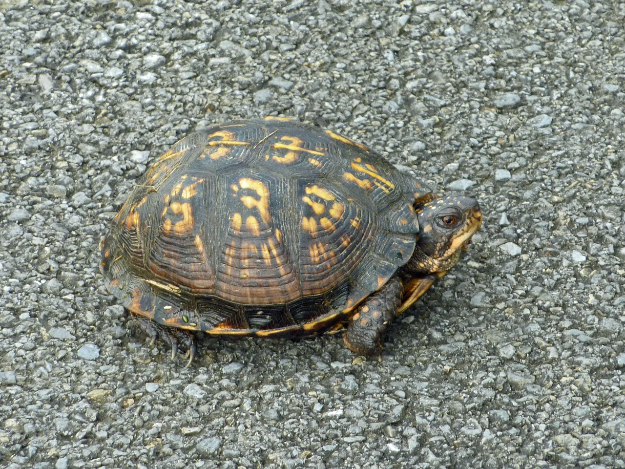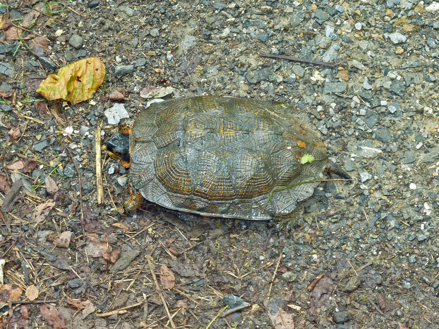 Hitting one of these guys at speed could cause a spill. I usually move them off the trail whenever possible. One exception was the 18" snapper I encountered last season. He could have easily taken out a few spokes as well as a finger or two. Unfortunately, I didn't have the camera that day.
