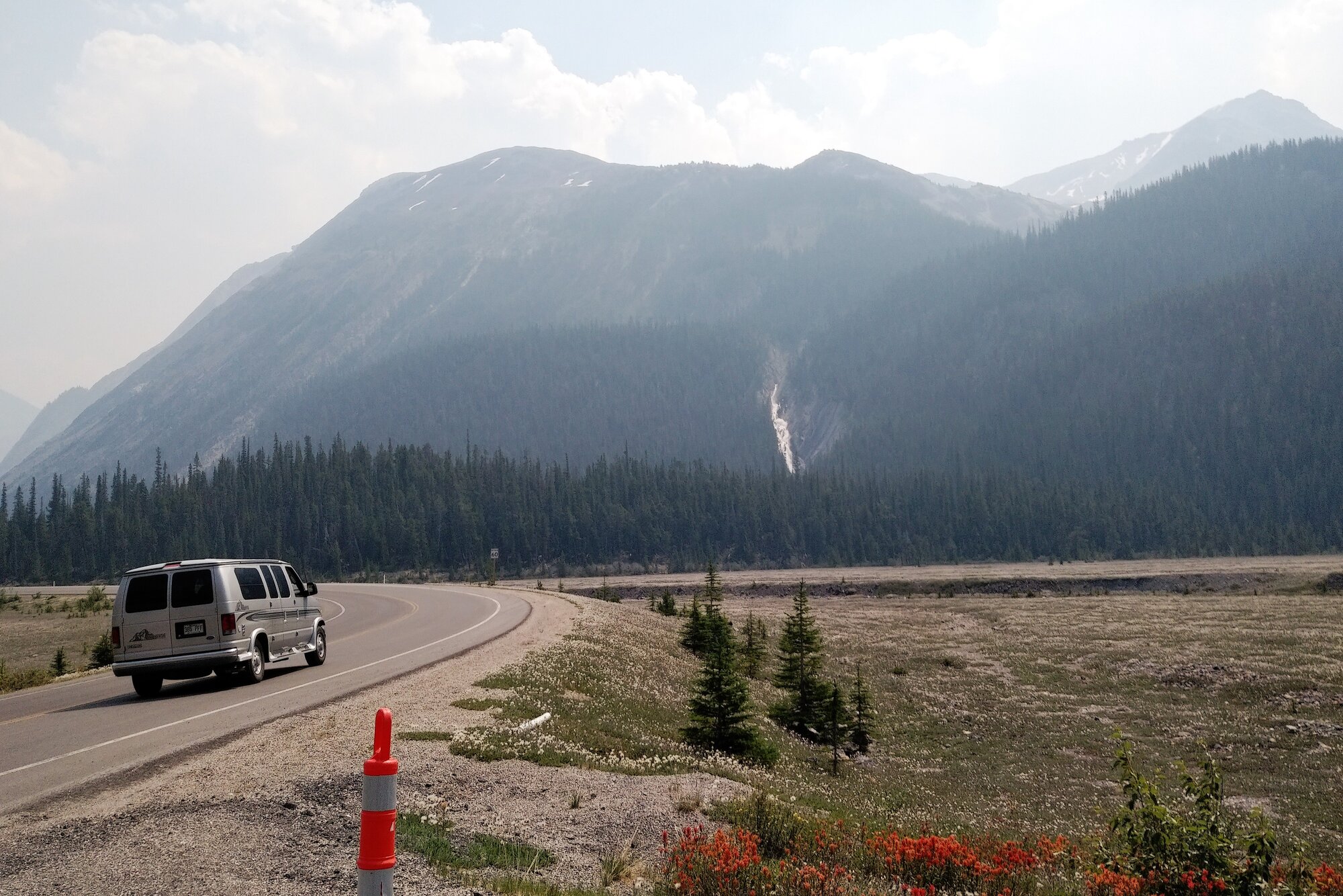Yes, it’s a beautiful area to be riding in when the skies are clear. That pullout is a popular spot to stop after the descent down from Sunwapta Pass. It was hazy day five months ago when we cycled to the Columbia Ice Fields.