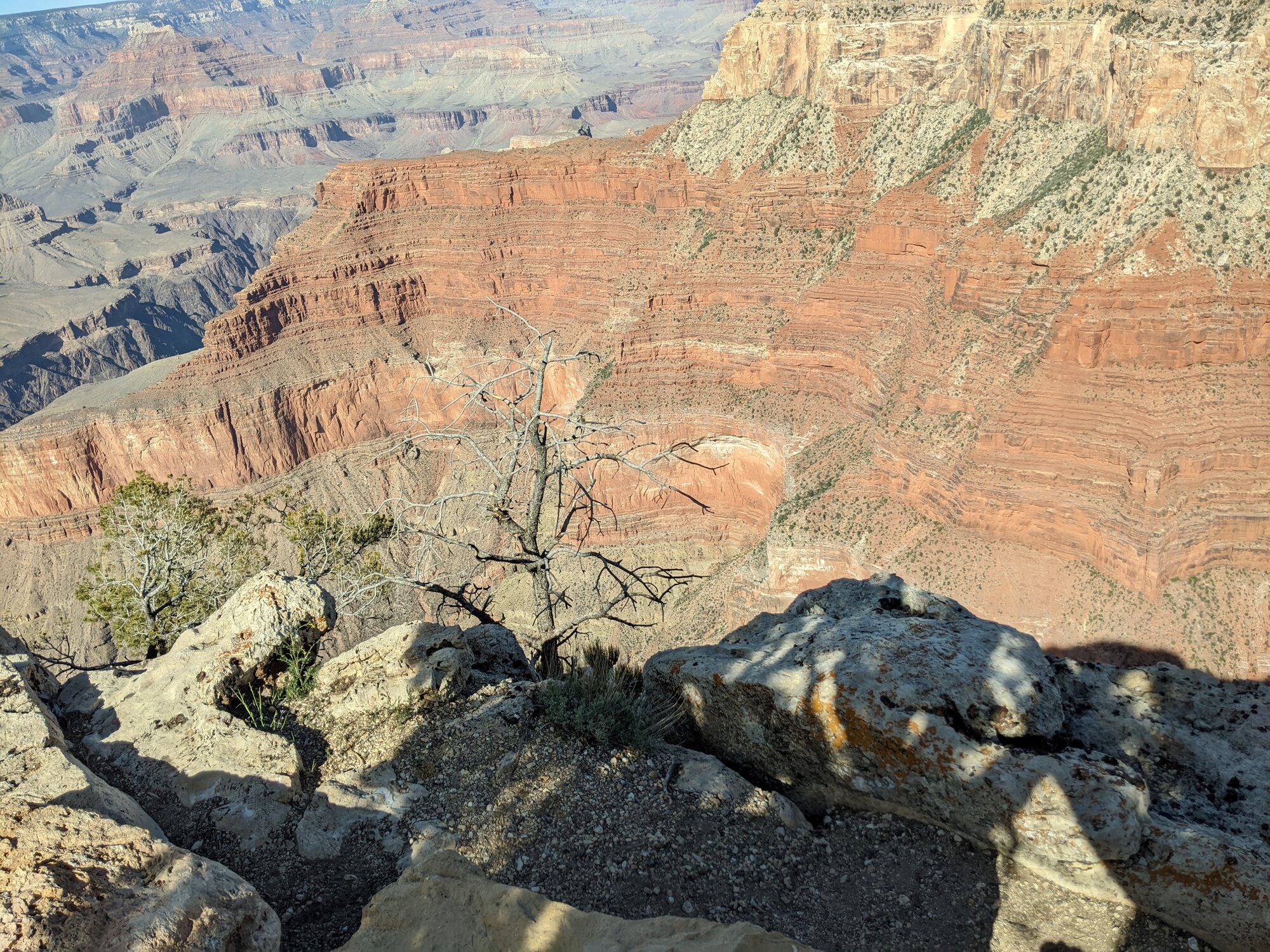 There is a foot trail that rides the lip of the South Rim that very seldom has a railing. This is one of the few spots that does.