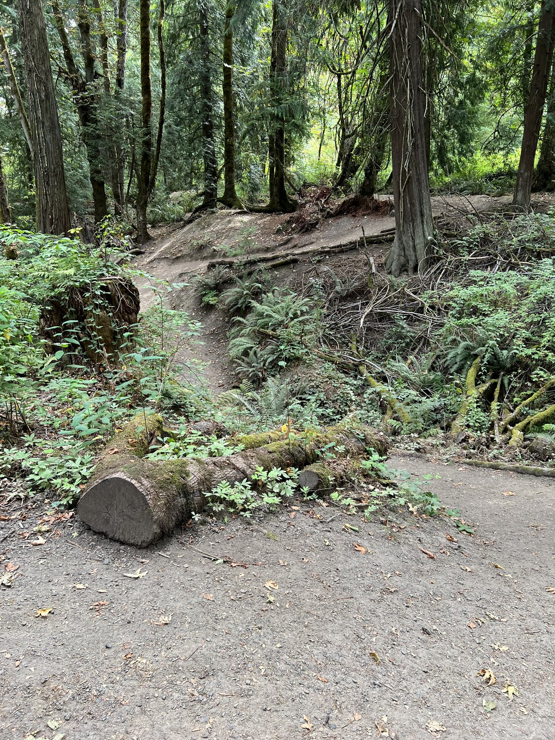 we had explored the trails in this area but I tried a different road access this time. well hit this gully. we may have handled the slops but the switchbacks and sharp turns no way. we hit the one section and was ok but the second section was a lot more but maybe easier to navigate. my wife had a bit of a hard time she is blind and was afraid when we had a switchback when we were walking. looks like the garmin did not get the slope grade because of lack of speed. Lucky we have a e tandem and it has a walk mode or we could not have gotten up that slop pushing the bike.