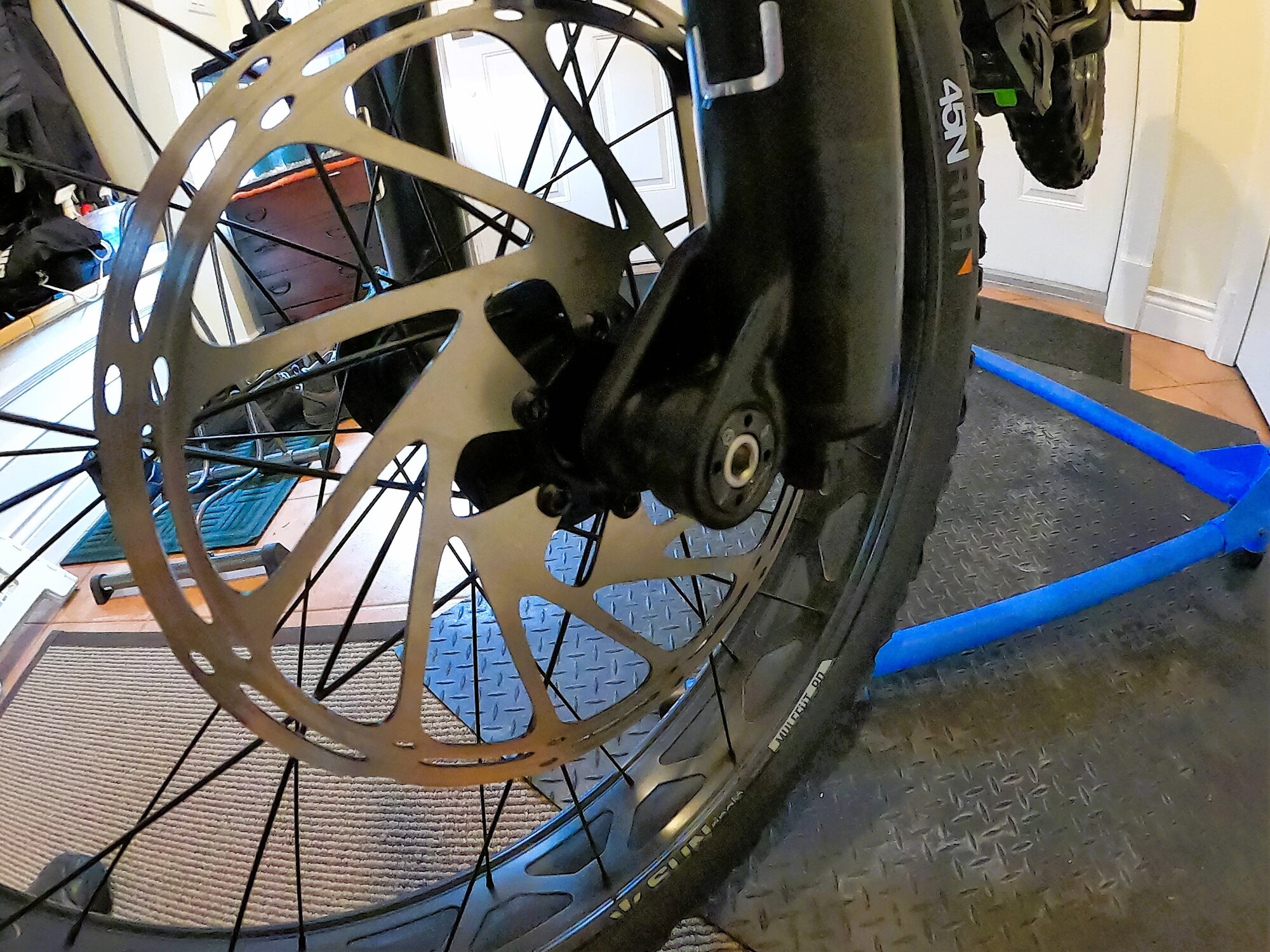 No ride today as it was too warm out and the trails would have been a bloody mess. Instead, I cleaned and serviced the drivetrain and brakes on the Wookie. It’s a beast compared to my other rides. Removing the front wheel is a bit different on the Manitou SL than most other fork axles in that it has a Hexlock which requires loosening a 6mm self-extracting bolt on the non-drive side then pulling out the 15 x 150mm axle on the other side. I also swapped out the metallic pads for quieter organic versions.