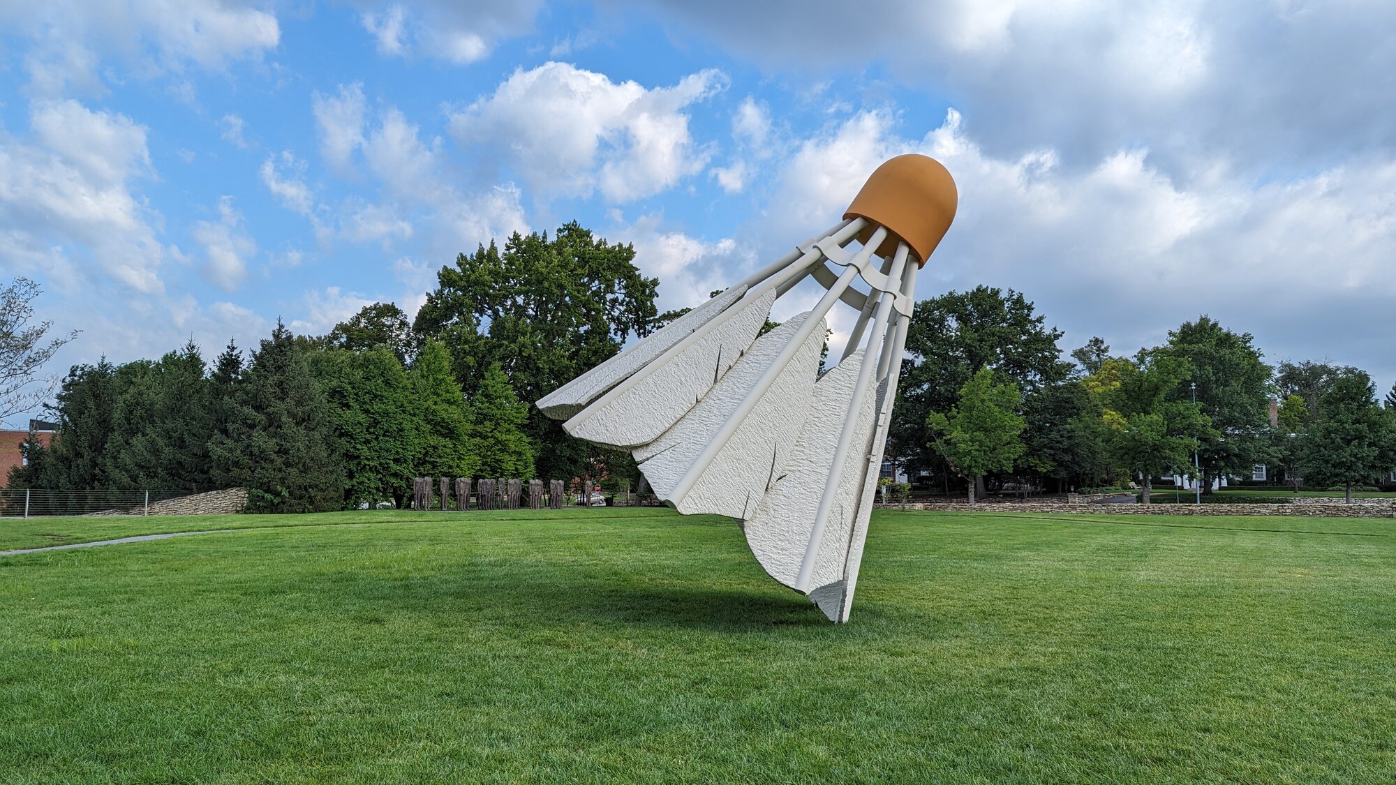 There is a large grass area in front of the museum.... quite large..... and the shuttlecocks are strewn about the lawn as if waiting to be picked up.