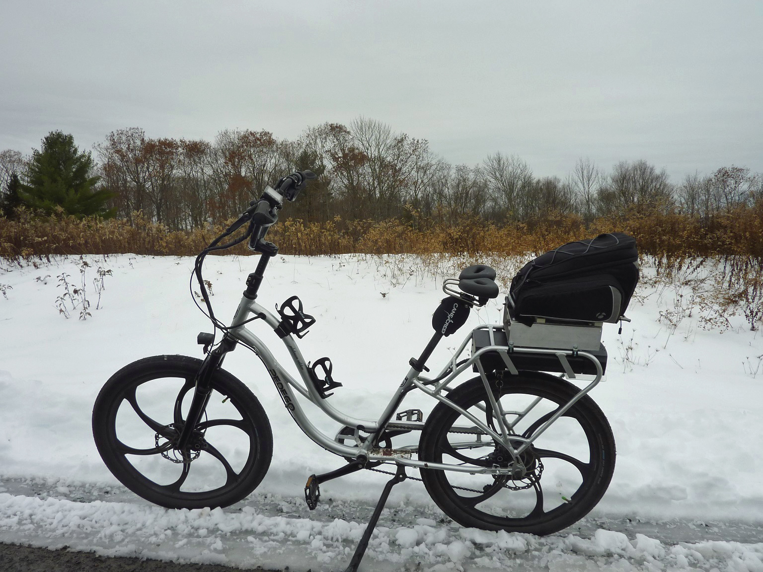 The Ortlieb bags , but no bike, is what I have right now. The bike I’ll get for spring will definitely be equipped with a KlickFix mount for my handlebar bag.[/QUOT