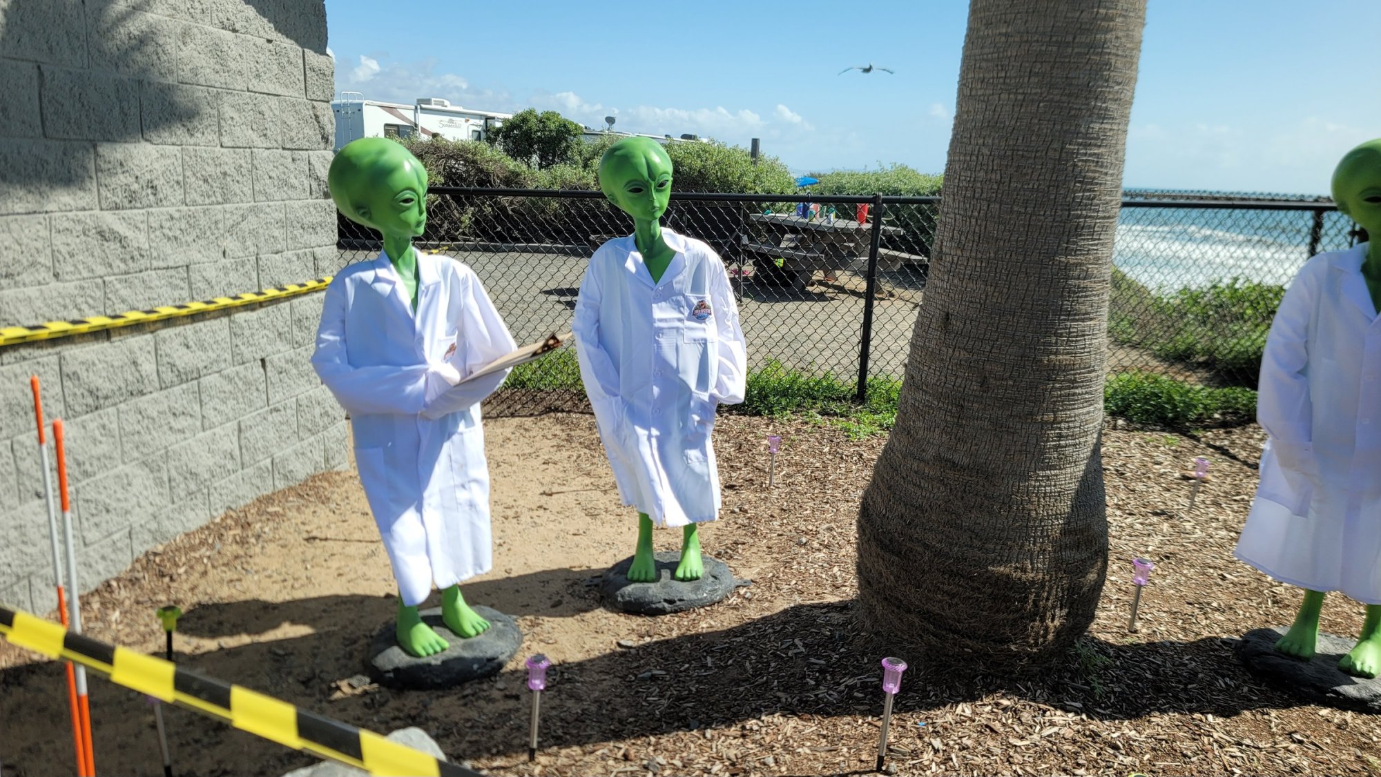 The girl behind the store counter swore with a wink that the alien scientists showed up after the display had been installed.