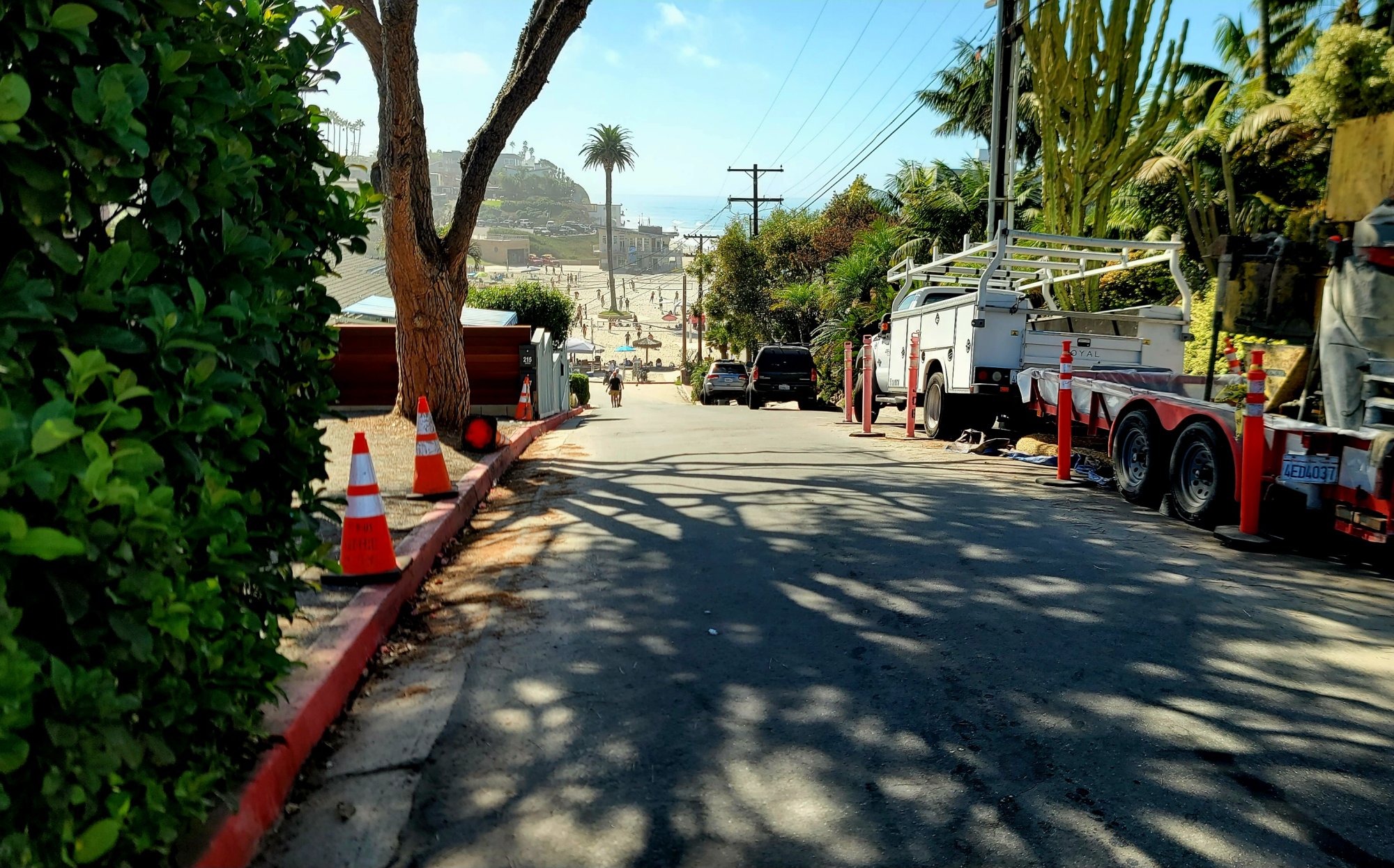 First stop, breakfast tacos at Moonlight Beach. The 5th Street descent to the beach, 1 block, 16%. Lots of these steep little ramps in Encinitas and Carlsbad.