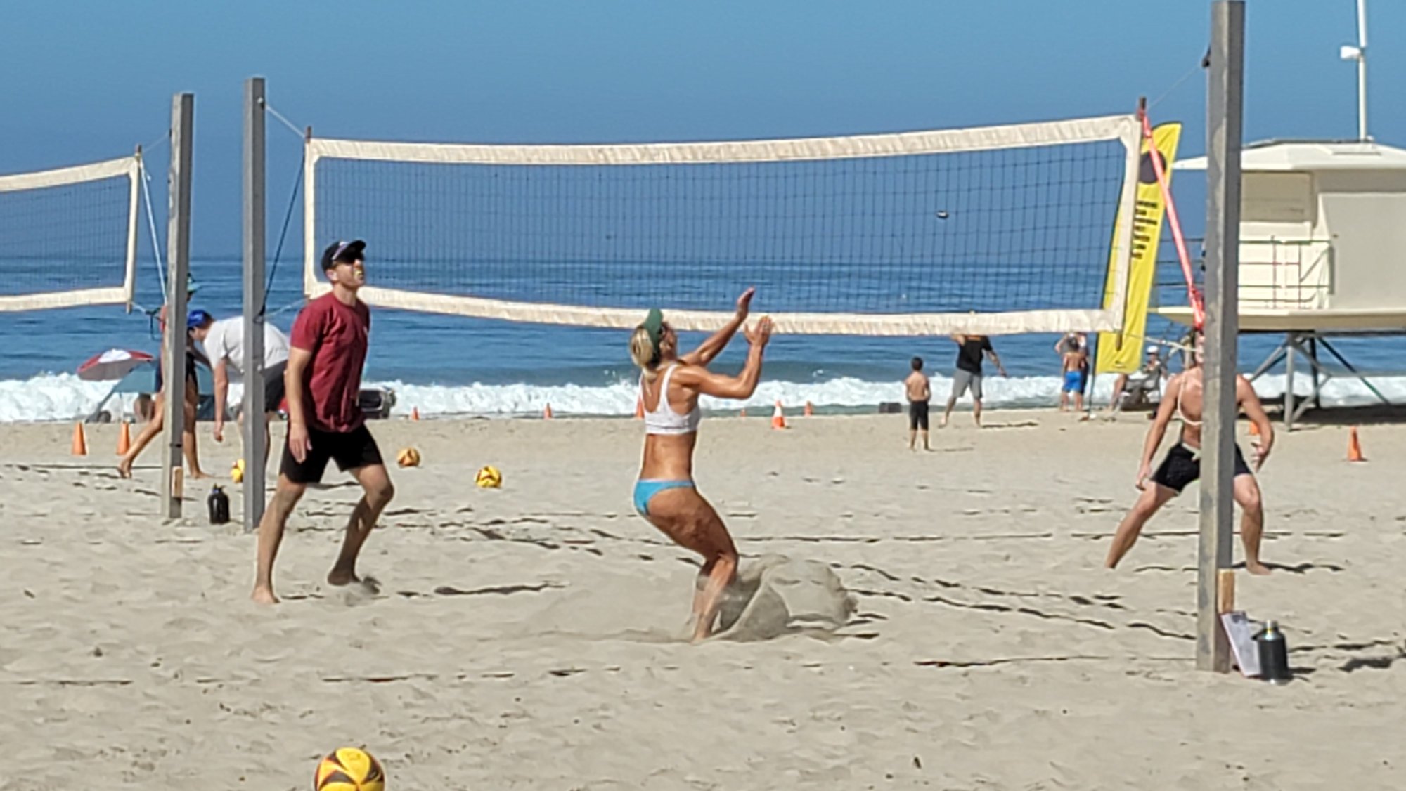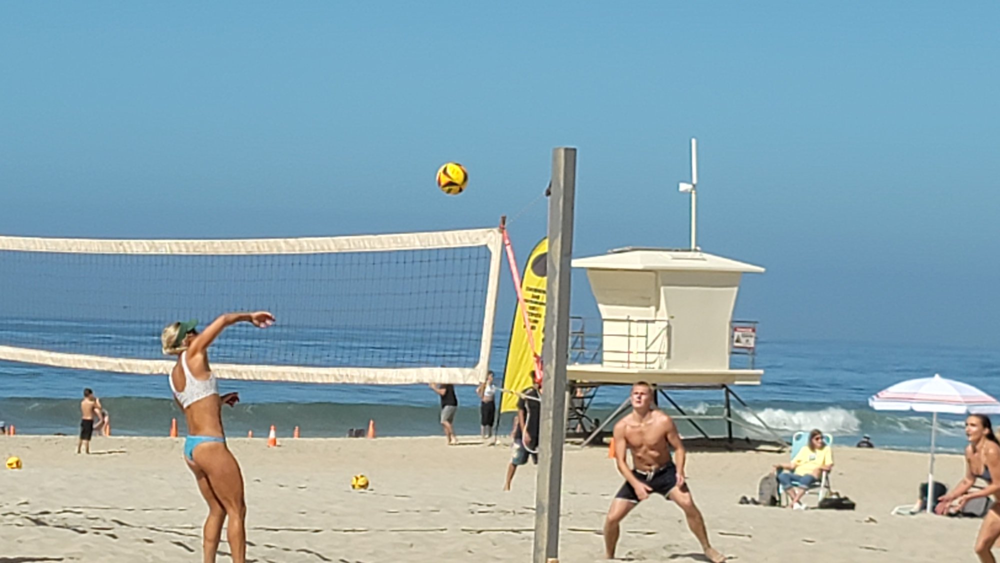 Volleyball players outnumbered all other beachgoers at the time.