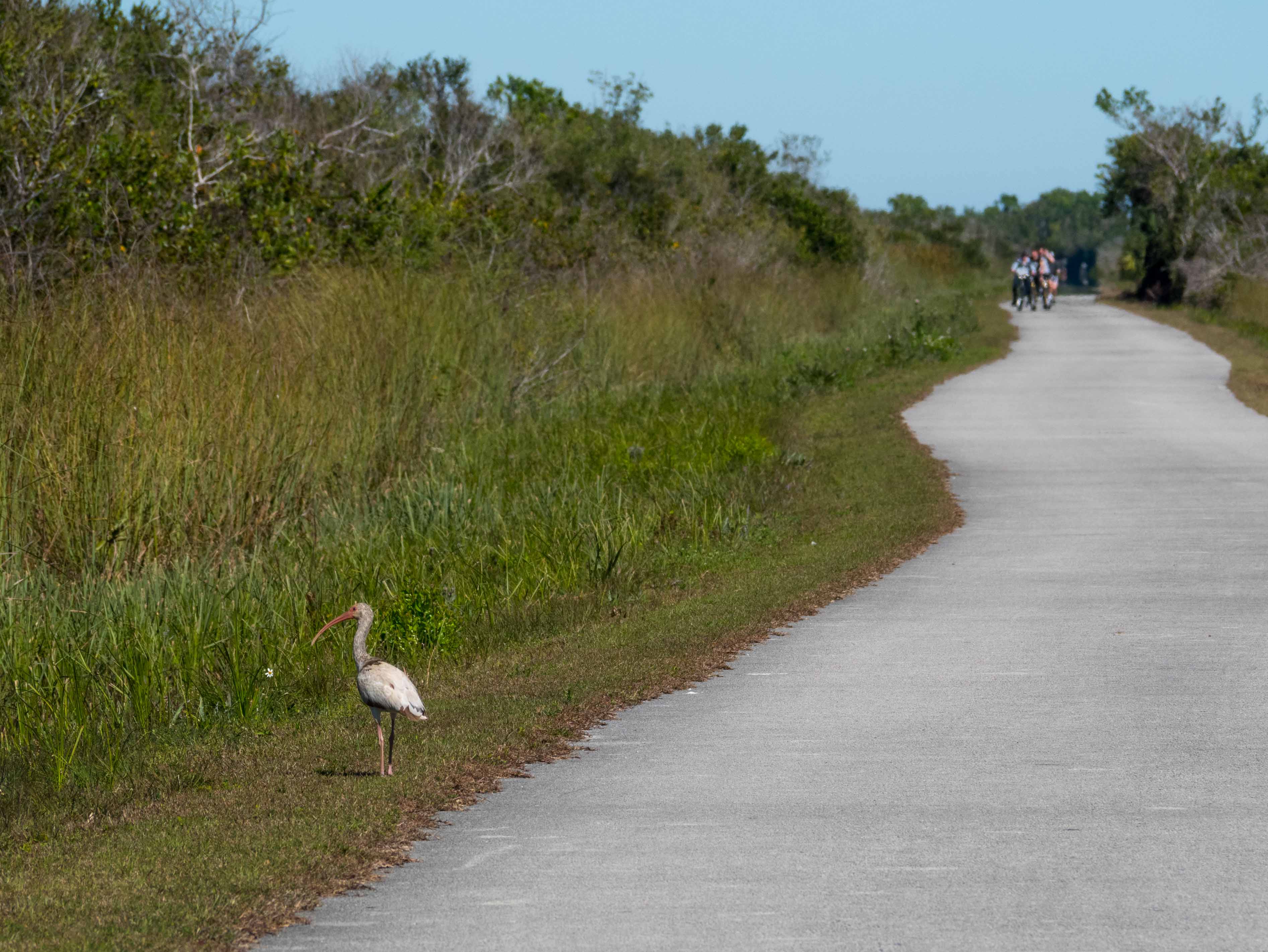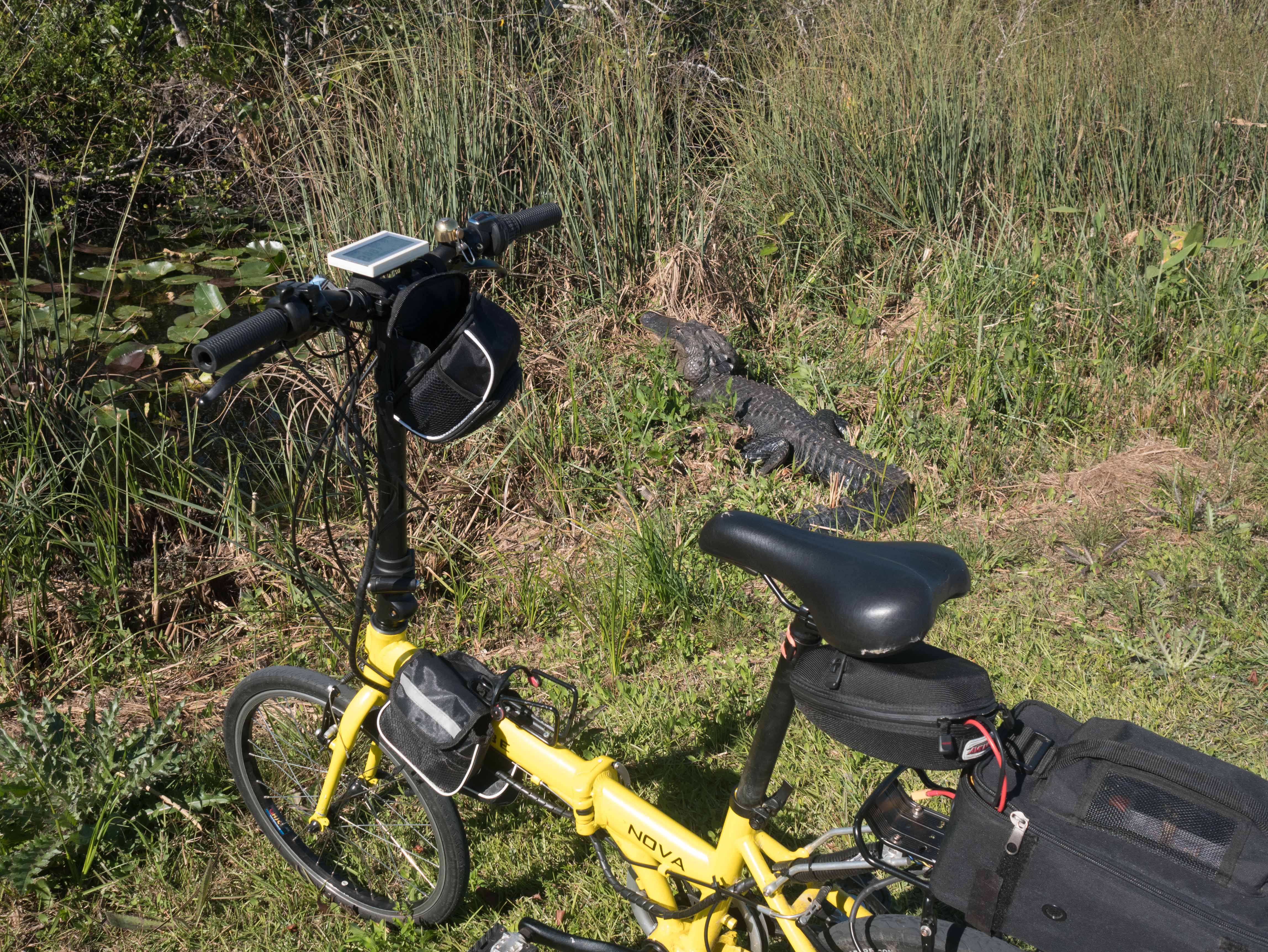 About 70 miles east of Naples, at the edge of the Florida Everglades is a 15 mile loop for bikes, hikers and trams. Trams run clockwise and bikes go counterclockwise to alleviate conflict, plus there isn't much tram traffic. The distance seems short, but if you're a city slicker, you spend a lot of time gawking at gators and water birds.