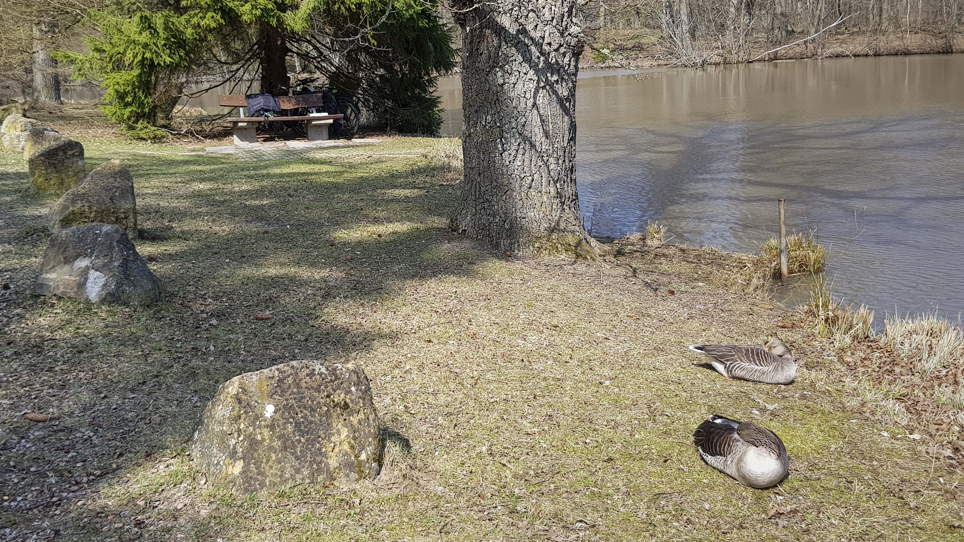 A glorious Sunday for a change and not an opportunity to be missed for a cycle ride with my other half. Our destination was the Hölzersee, a place I rode alone to a short while back although in the space of such a short time it was surprising to see just how much the countryside had sprung into life. My wife likes the Hölzersee, especially when the hut serving as a cafe is open as it is one of the few places that she is aware of that sells Irish beer - her favourite tipple. Me - can't stand beer of any description although in my youth used to throw it down my throat as though it was going out of fashion. No, for me a nice mug/glass of tea does just fine thank you very much. Attached a picture of the sea, a pesky Duck who fancied a nibble of my sandwich little knowing it contained roast Duck