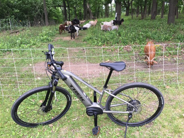 While test riding this Trek Dual Sport Plus I came across this herd of goats. Found out later the goats are used for vegetation control instead of chemicals and repeated mowing. The temporary fence is moved every so often.
