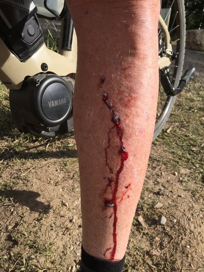No, actually SPD clipless. The problem was too steep of a rocky climb and I couldn't release fast enough. I also scratched my new bike and it won't heal as my leg eventually will. :(