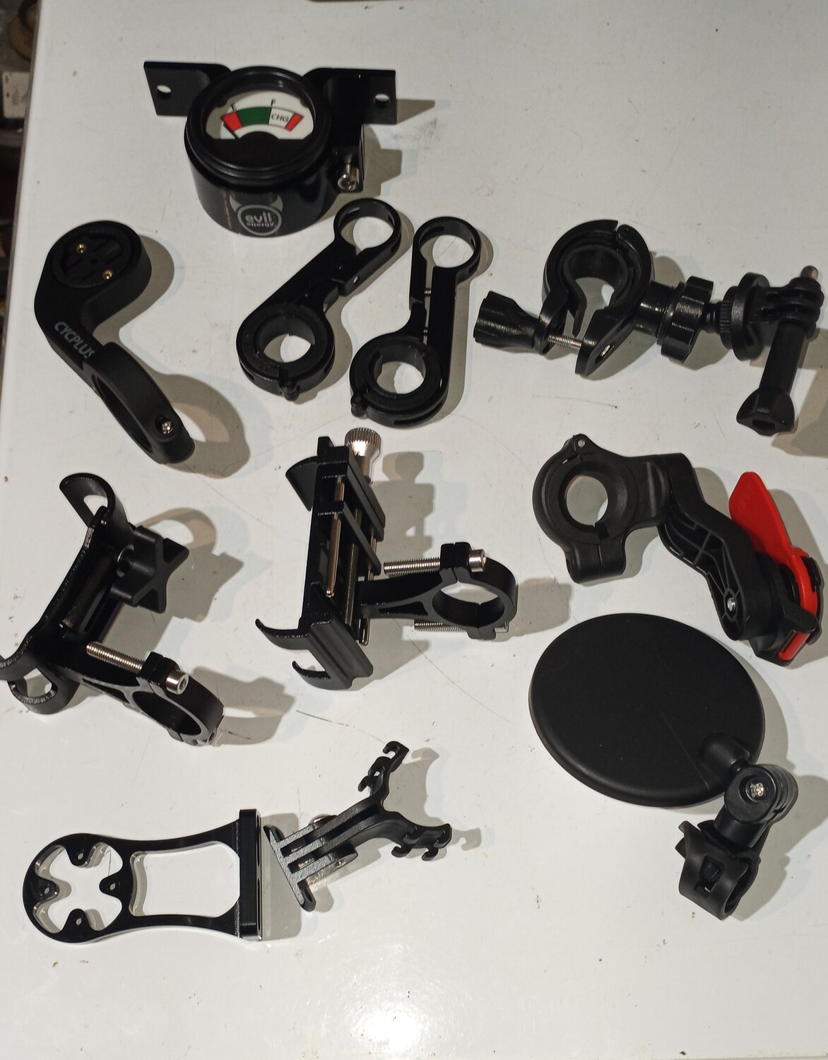I want to mount my analog voltmeter to the riser part of my handlebars but I need double pivoting clamps.