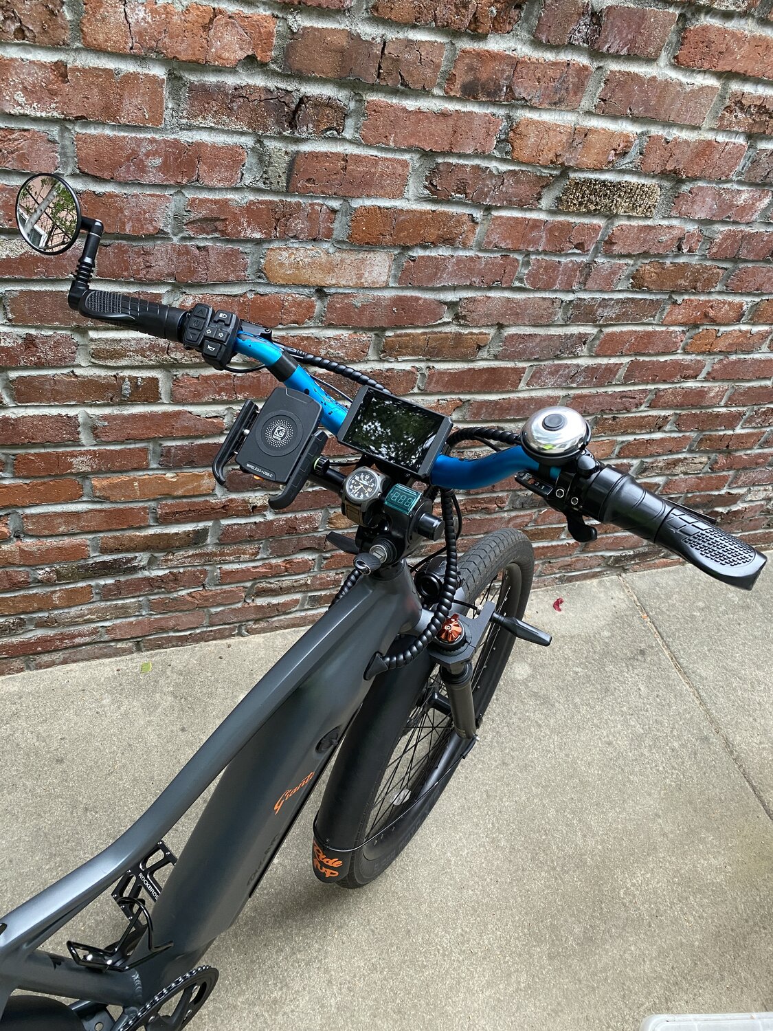 Very nice setup it almost looks like a Joy Stick from a video consoleMy g road bike's cockpit. L-R: Brifter adapted to operate dropper seat post, regen button, watt output selector (up to 1000w in 250w increments), bell, throttle and rear gear brifter. CA3 mounted to custom headset spacer plate.
