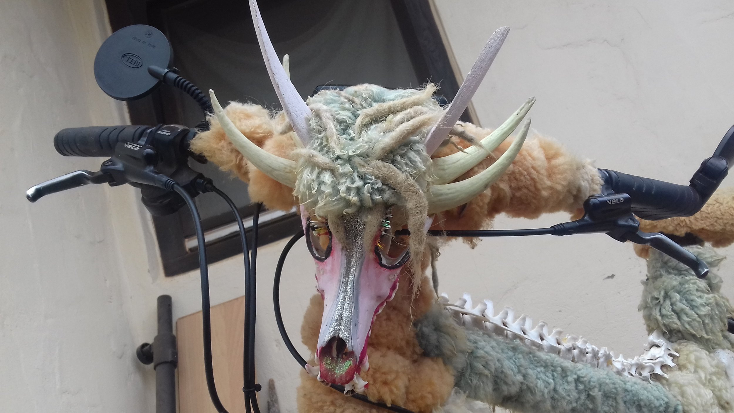 Here's our Corratec hybrid wrapped in sheepskin and some bones we found. Not much room for anything else after the Nyon though. Still trying to figure how to get a forward pointing 1000lumen light onto dutch bars and use an old smartphone for video.