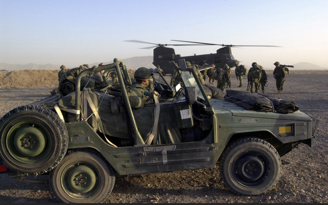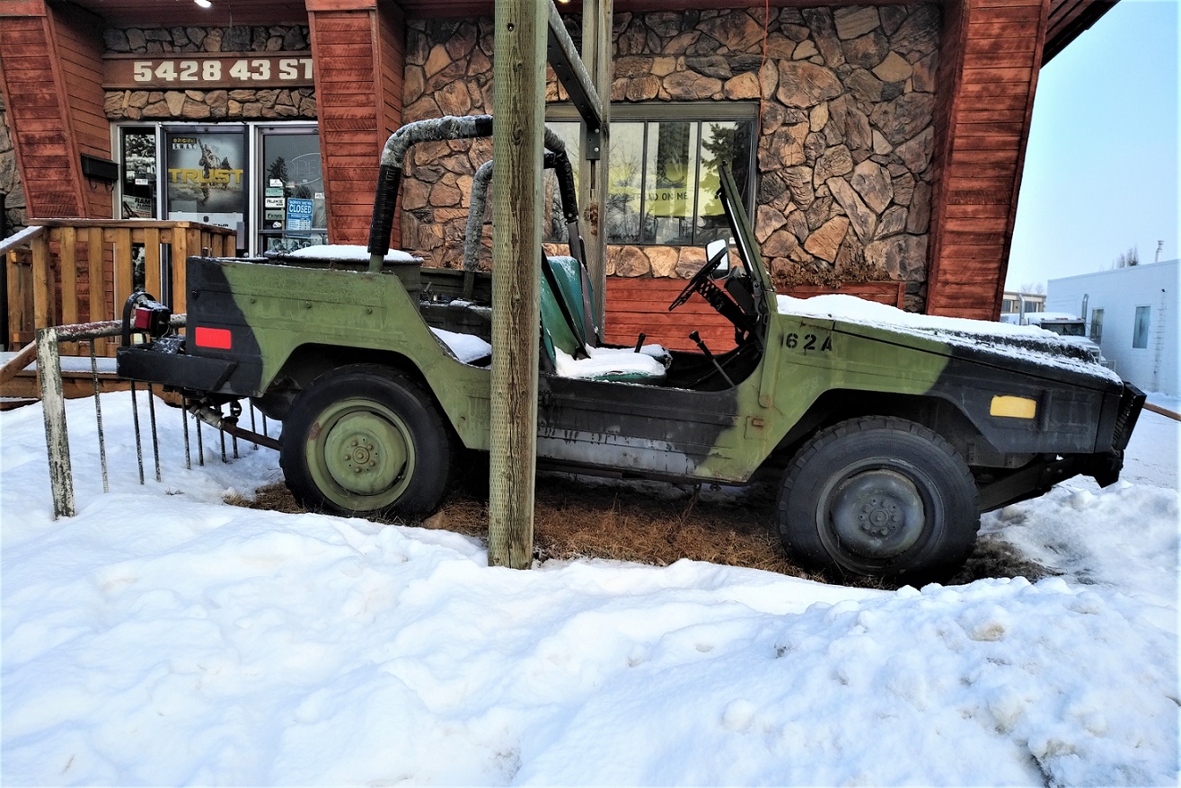 I came across this odd-looking set of wheels on my ride today. Anyone care to guess what this is or who the manufacturer was? It's definitely some type of former military transport vehicle. Looks like it's seen better days.