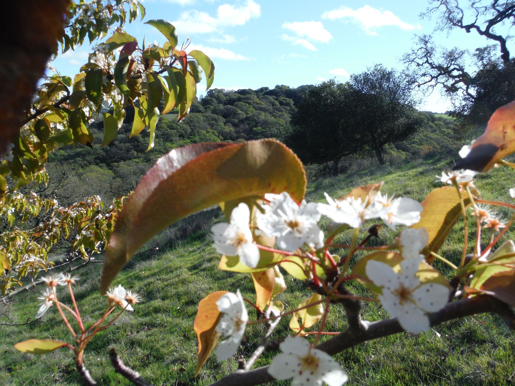 Right now conditions have changed here in the other CA. We are having 50 Mph gusts and it is hailing in the hills. Here are a couple of more photos from that ride yesterday. Look for the magnolia blossoms, then some natural ornaments. I am glad I got the ride in when I could. I was just watching the trees sway and cars are parked under them. Ominous.