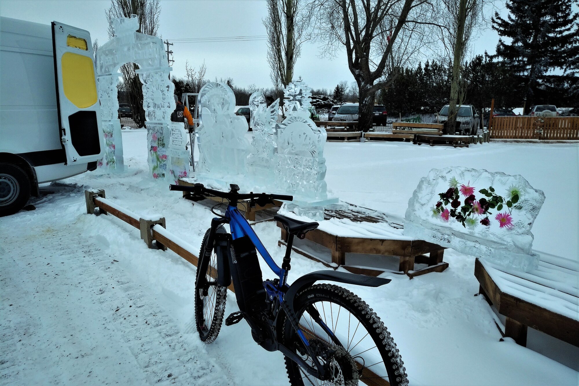 The garden center is only 8km from home but I thought that the display had already been completed once I arrived on scene. Turns out this was only the second day that the fellow was working on it. I’ll have to return once he’s done, maybe at night when it's back lit. It was -15C on yesterday’s ride which was a great temperature for carving ice. This has to be at least the 8th or 9th season that he's been carving ice at this location.