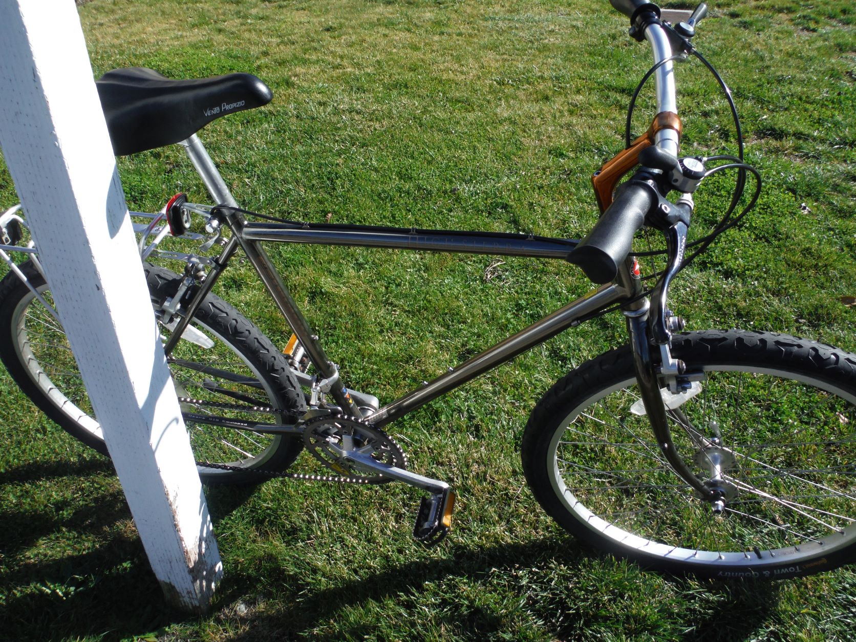Here is a 1987 mint condition bike. This was the second gen of mountain bikes. The first generation broke. This is double welded, triple butted chromoly with extra-beefy brakes fitted with motorcycle levers. Now it is 90Nm, 504Wh. Check the welds! Beautiful. It is headed to the Berkley hills in five minutes. Remember when Schwinn was cool?