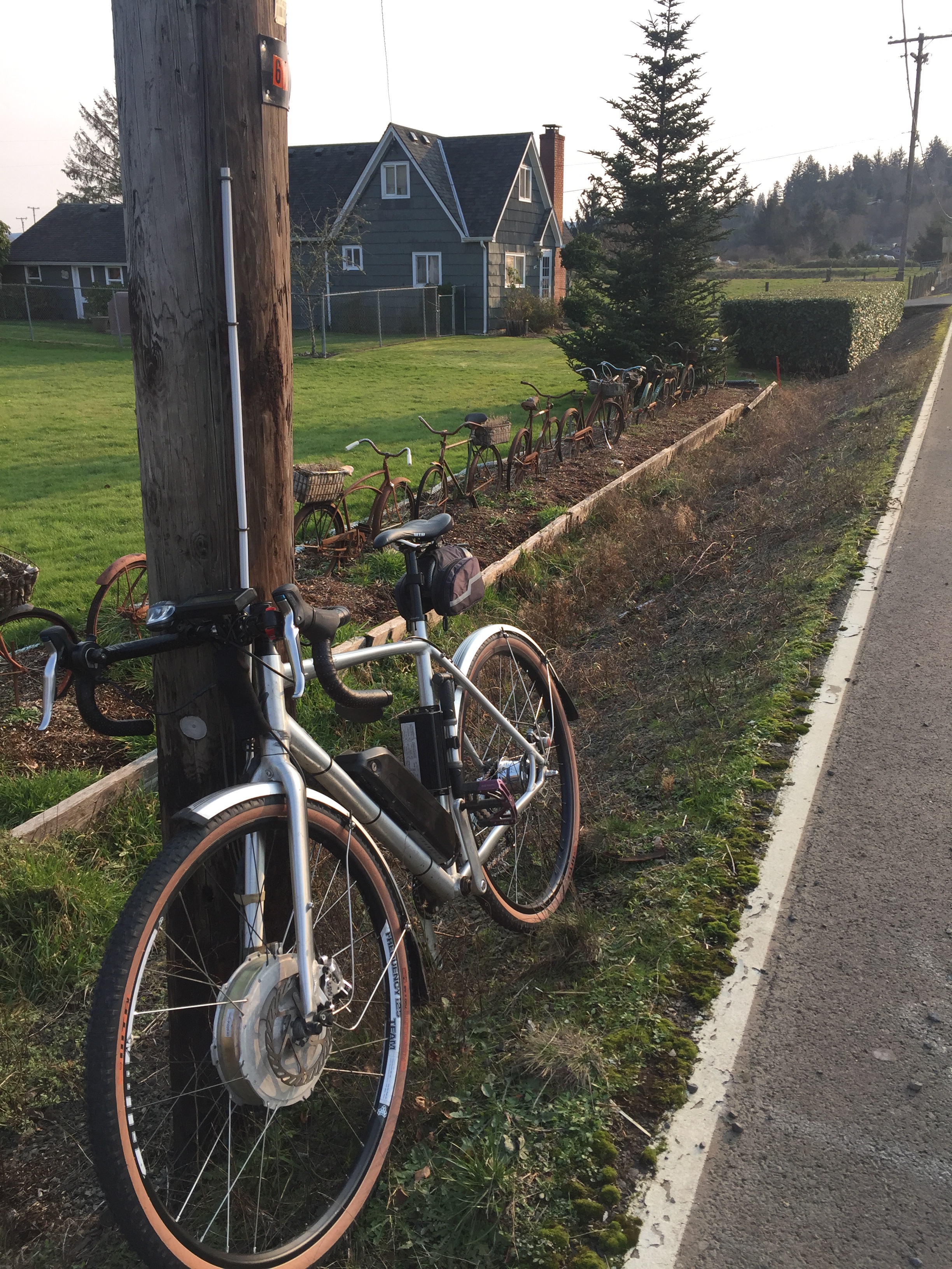 interesting folding bike weighs only 37 lbs ! Looks like you have increased the size of the battery based on the large bar bag? That reminds me that we have a Yunbike C1 hanging up in the garage that nobody has ridden in a long time. I better give it some love tomorrow.a little trip to local grocery store in light drizzle on my mosso 20''...fisher fab keeping the path lit...