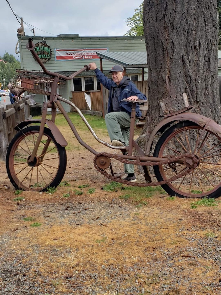 Nvreloader said: I think a Ultra 1000 Bafang will do the trick, might need a rear wheel booster, also, maybe. How about some info on this "Pack bike Hauler"?? Tia, Click to expand... The bike is 'garden art' in the town of Packwood, WA. A fun little town in the cascade mtns. I'm 6'3" to give an idea of the size of this thing.