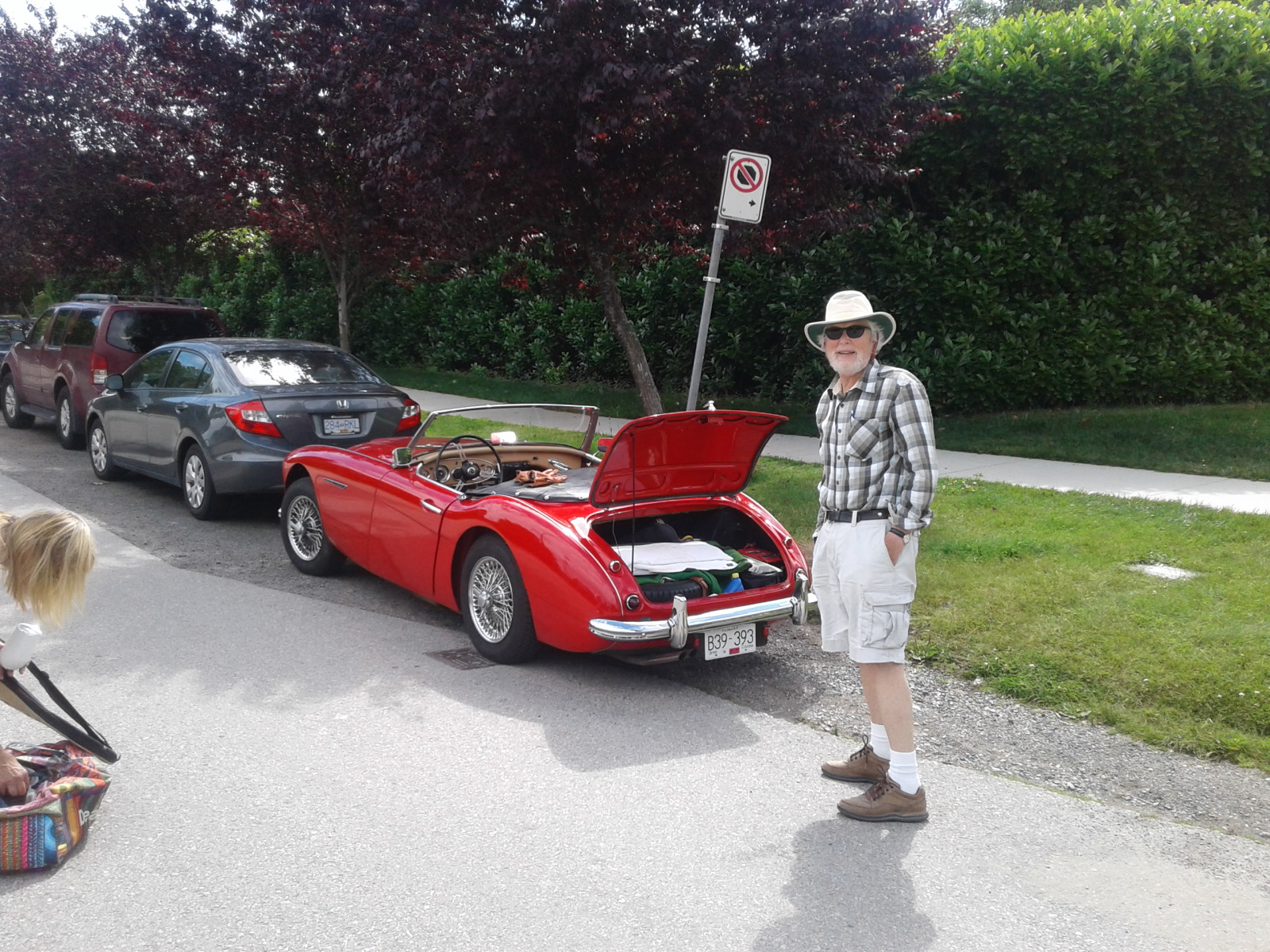 At the trailhead parking lot full of suvs, this bright red antique pick-up really stood out.