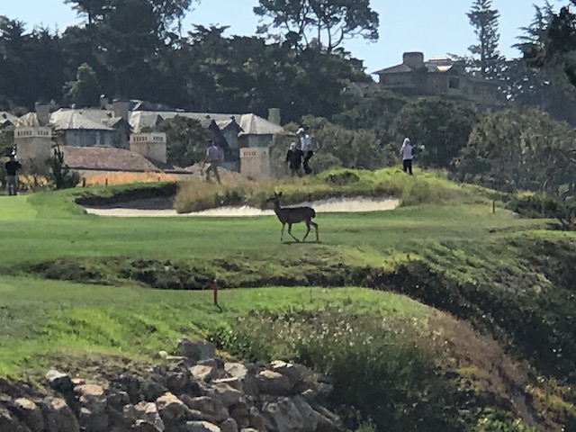 An unexpected visitor joined us on the fairway of the 17-mile drive in Pebble Beach this morning.