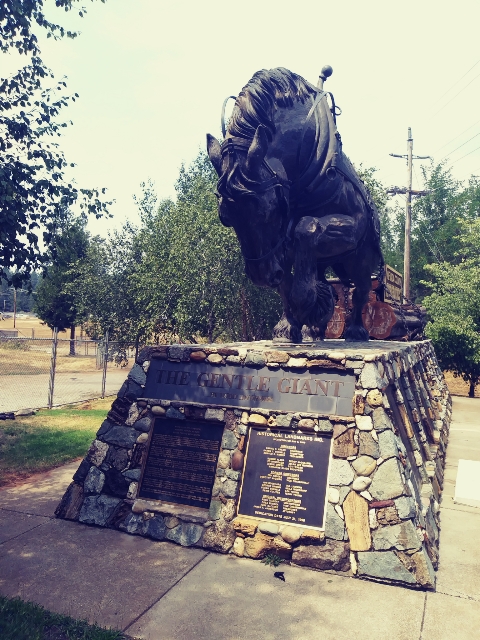The 'Gentle Giant' is a nod to the area's resource rich history; mostly timber and gold mining. When the transcontinental railroad came through agriculture blossomed with access to larger markets. It remains an important part of the economy today.