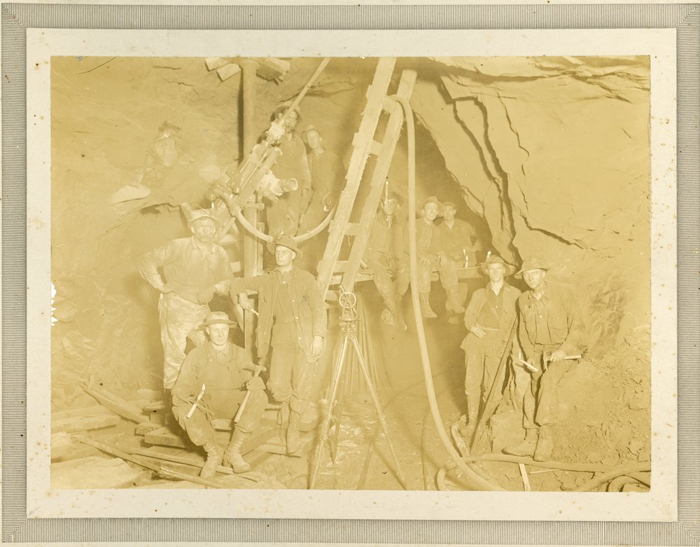 View attachment 67048 A little hard to make out but you can see a similar drill, with a bit installed in this mine photo from the late 1800's. A 2 man drill crew could drill and set 10 times as many charges in a shift as a hand crew making the pneumatic hard rock mining drill indispensable to a profitable mining operation. Note the surveyot's transit in the foreground. Surveyors were constantly at work underground keeping the tunnels headed to and through the gold bearing veins. The local Empire Mine, one of the richest mines in the state before WWII, kept a 'model room' with up to date surveyor data represented in color coded 3D form detailing all of the tunnels and ore veins. Very impressive to visit.