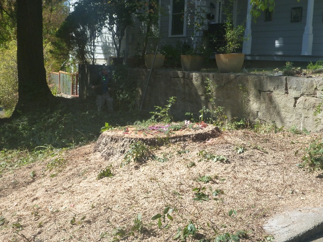 The protesters, all dozen or so of them, had named the tree 'Bella'. By late afternoon Bella was gone. Locals left cut flowers on the stump. The City has very restrictive tree removal regulations but even they agreed that fire protection came first and that the Utility Commission had jurisdiction.