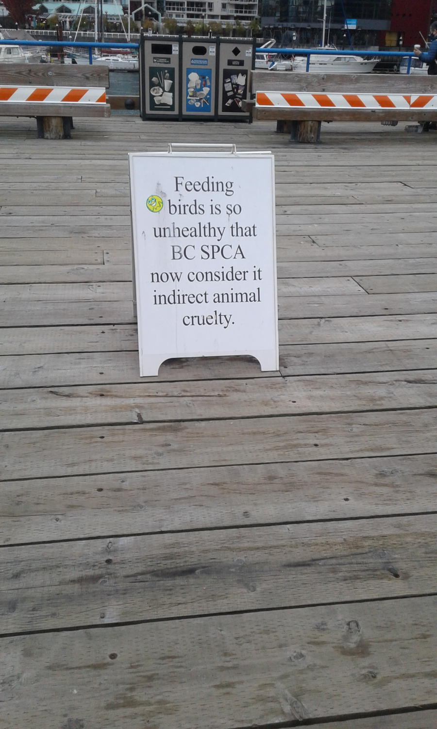 Feeding Birds: They did this years ago in NY City. Then the ducks started starving go death during winter in the park. So they told people to feed them again.