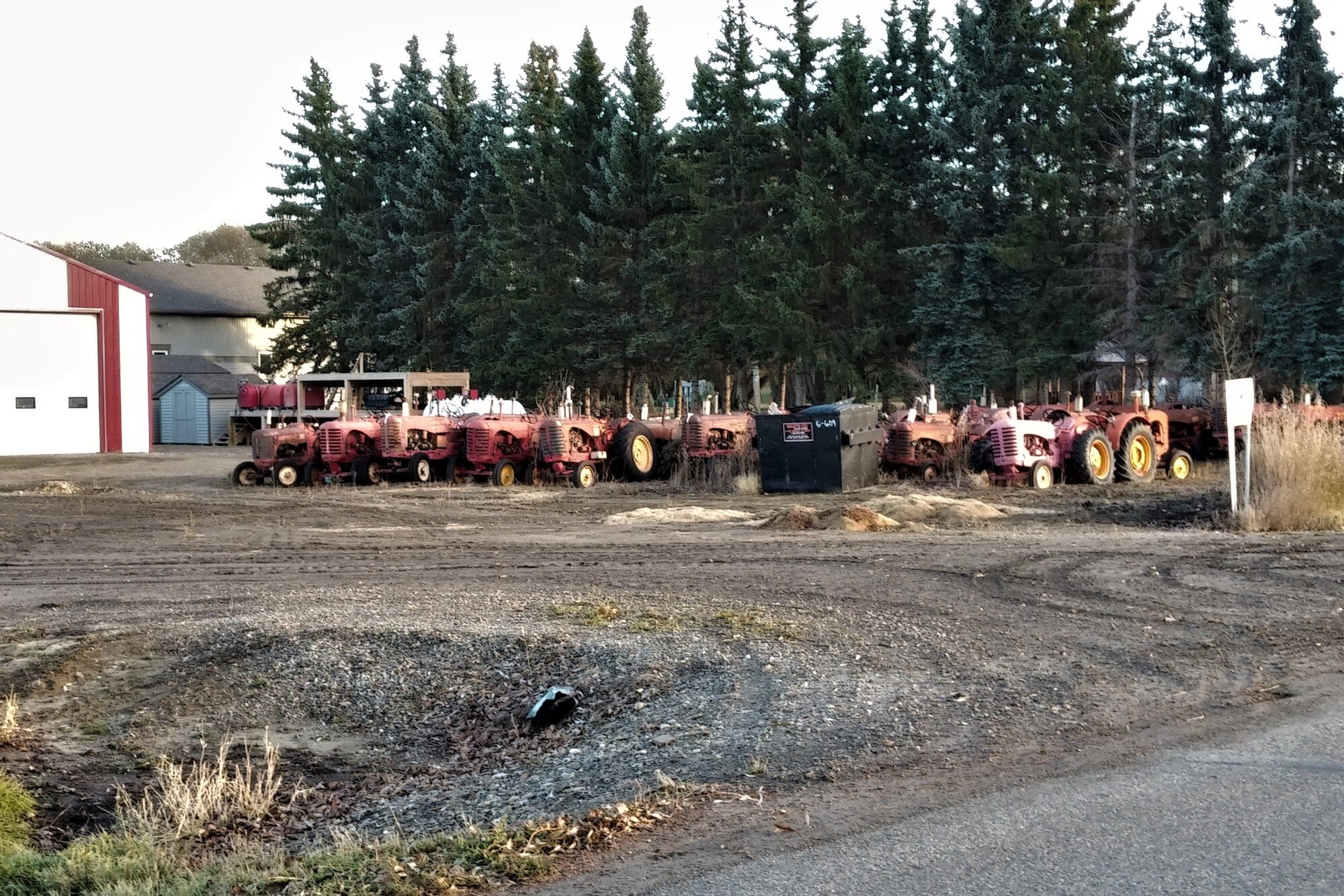 Sense a theme to this post? Both sides of this rural property were packed with old tractors, most in the state of disrepair and perhaps a handful were in some form of restoration mode.