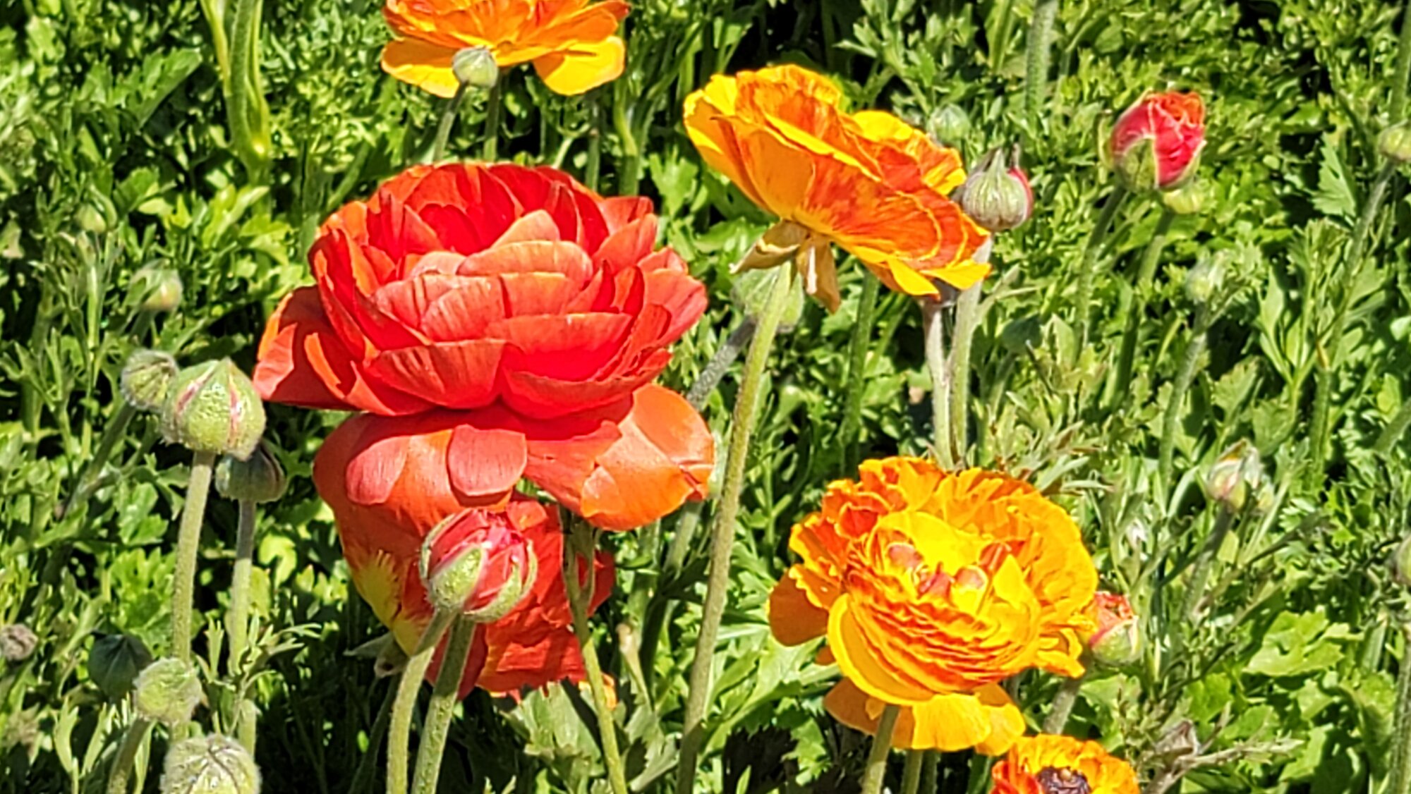 These are all Ranunculus varieties from 2 days ago. The Carlsbad Flower Fields is a 4-generation family floriculture operation shipping Ranunculus flowers and bulbs and poinsettia plants all over the world.