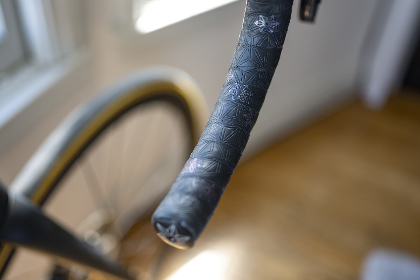 changed out my slightly frayed bar tape (from a minor fall). took two tries on each side to get it sort of the way i wanted it, which was mostly about not having to use electrical or finishing tape at the top part. it's got a bit of a bulge up there, which actually feels pretty good when on the bar tops (where i never, ever, ever ride) but otherwise i'm happy with it. this silly tape has the little stars only on one edge of the strip, so if you wrap it in one direction, like i did the first time, you cover them all up. did that on the left but not the right, so i had to redo them both lol. did better the second time anyway!